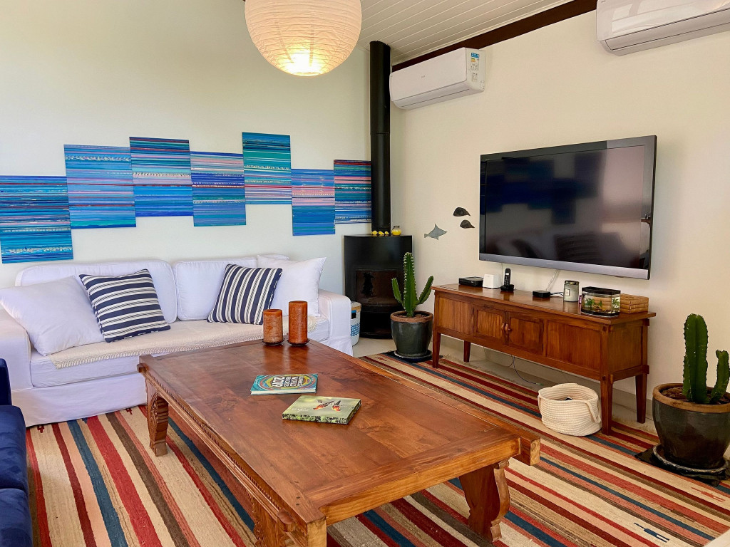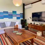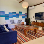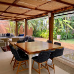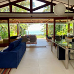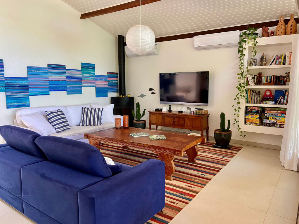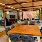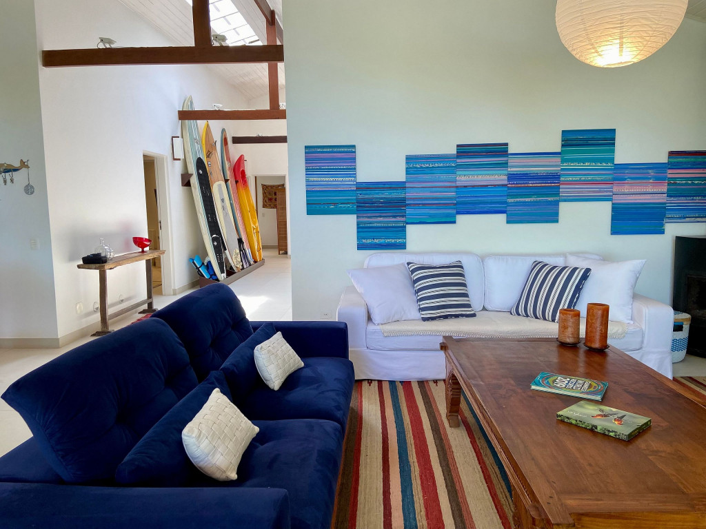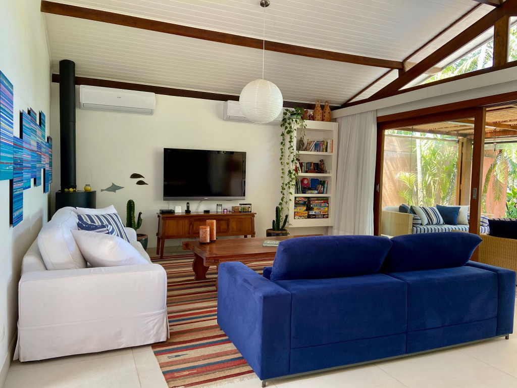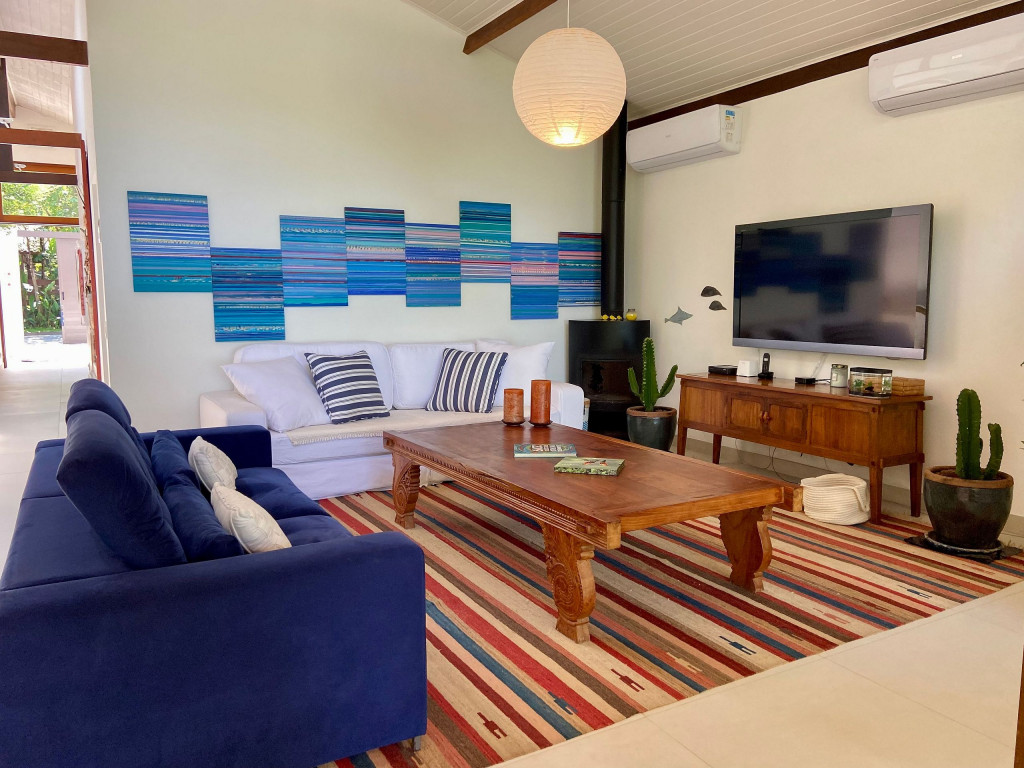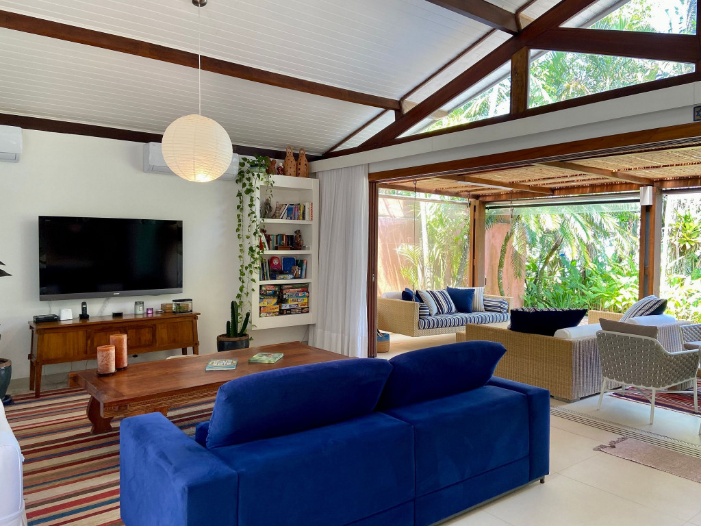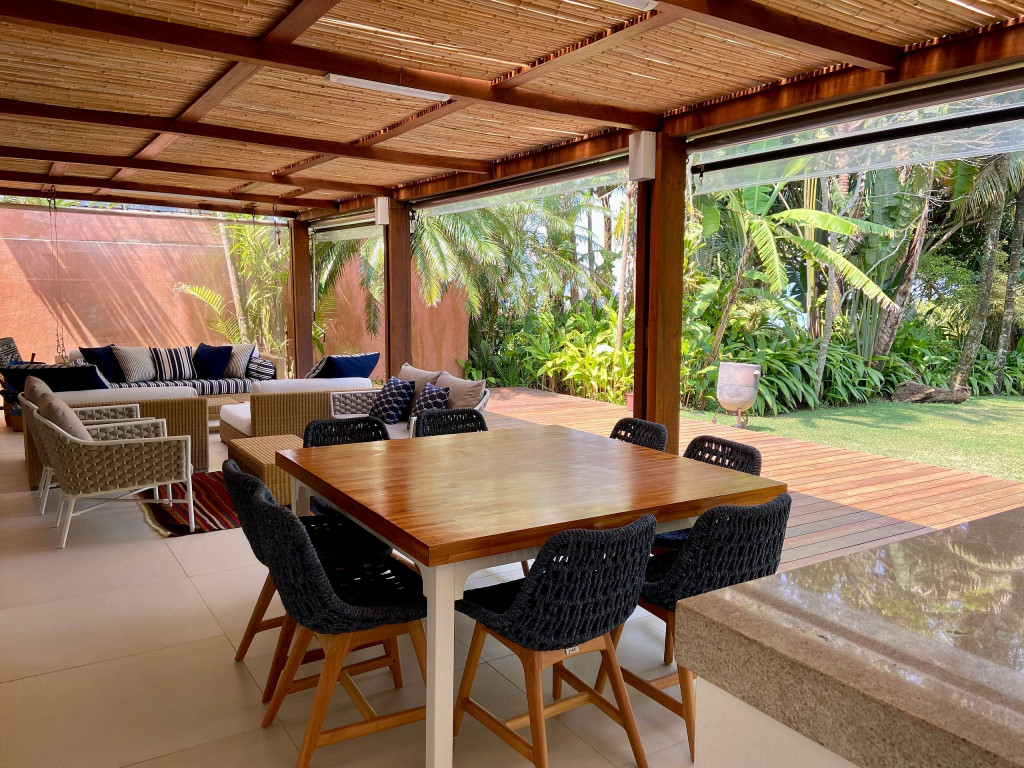 Na garagem existe um ponto de recarga para carros elétricos.A casa acomoda confortavelmente até 10 pessoas para pernoite. Além isso, é permitido que sejam recebidos até seis convidados para passar o dia, vir para um almoço ou jantar, desde que não ultrapassem as 10 pessoas para pernoite.São disponibilizadas roupas de cama e de banho.Possui cadeiras de praia e uma tenda montada em frente à casa. Também é disponibilizado um cooler que pode ser abastecido pela máquina de gelo que existe na casa.A Olar! auxilia também nas compras de supermercado, para que ao chegar os hóspedes já encontrem os armários e geladeiras abastecidos.A empregada é paga à parte, no valor de R$ 250/dia. Ela cuida da limpeza, arrumação e também do preparo do café da manhã e almoço. Para hospedagens com ocupação acima de 6 pessoas recomendamos a contratação de uma ajudante para a empregada, no valor de R$ 200/dia. Dessa forma é possível ter um serviço à altura do que a casa pode oferecer, inclusive com petiscos e caipirinhas na praia e no quintal.