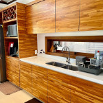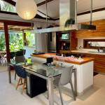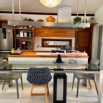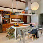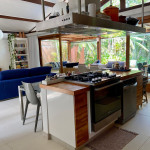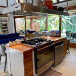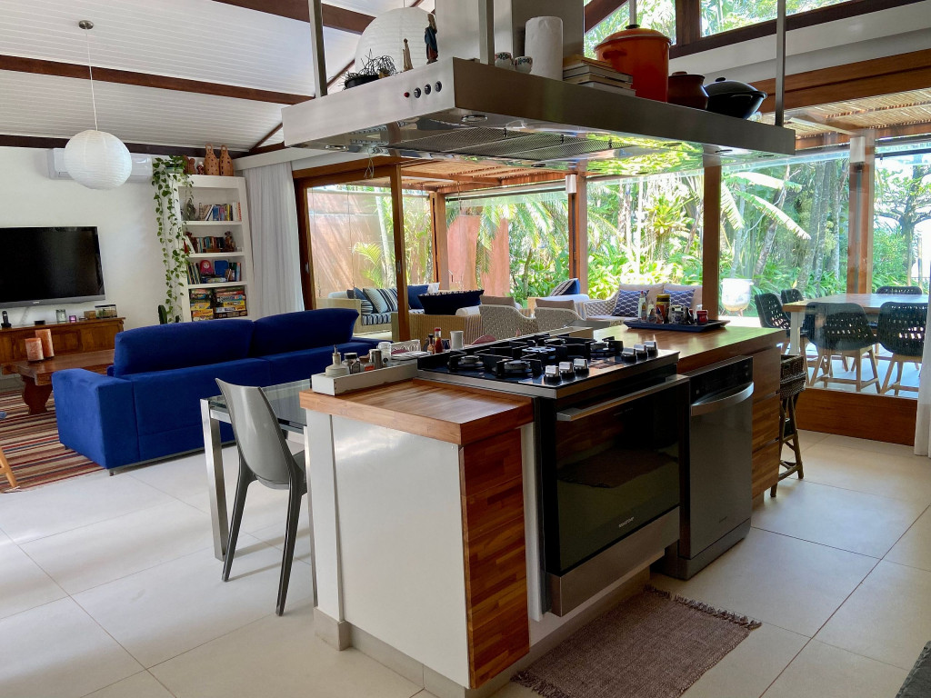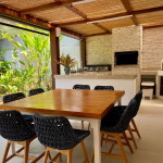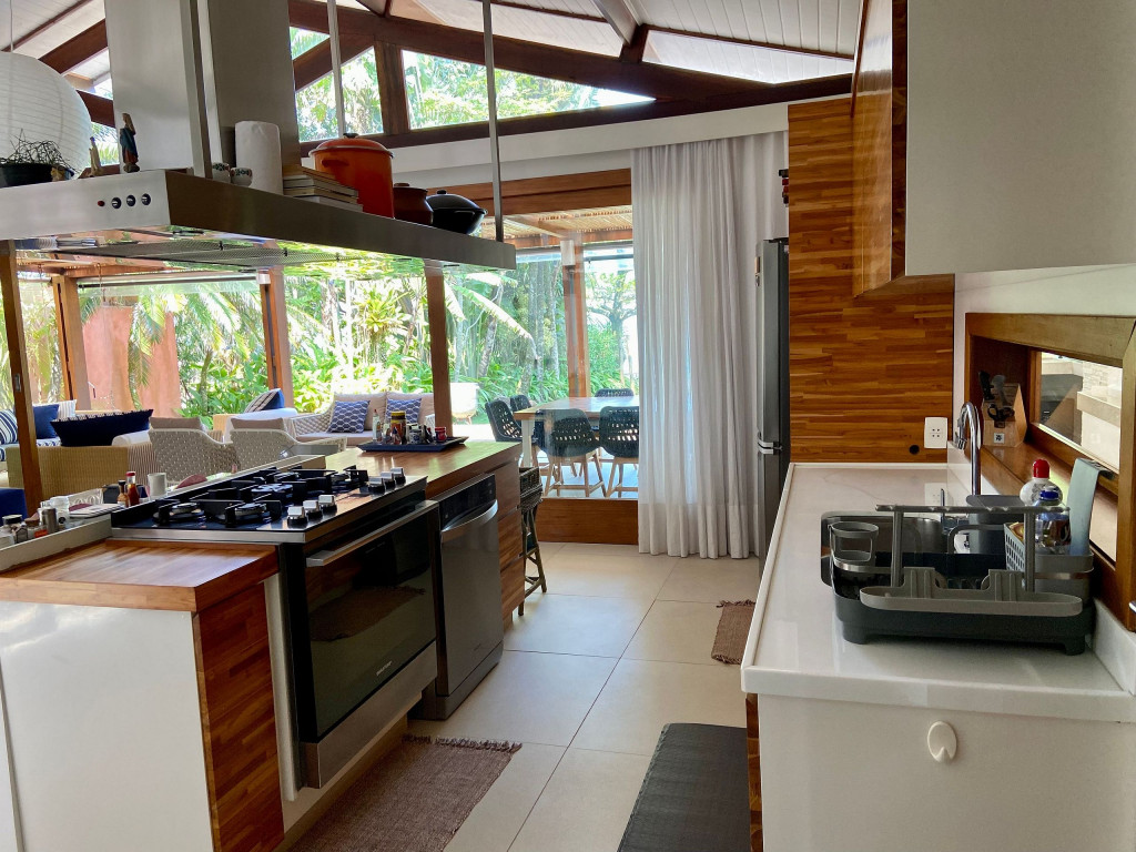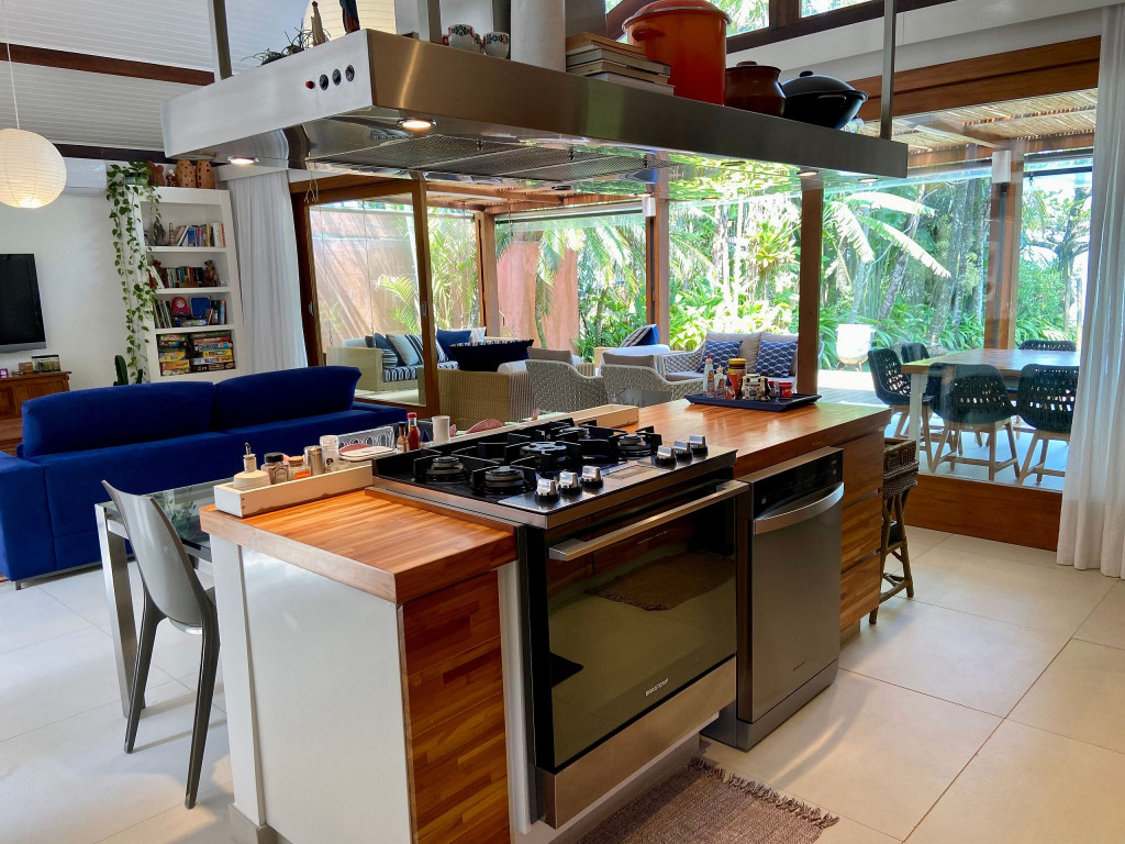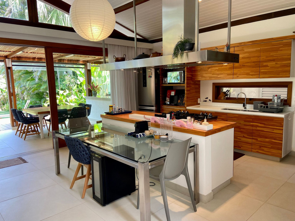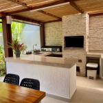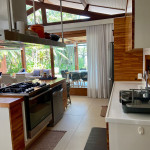A cozinha é equipada com lava louça, duas geladeiras, filtro B.Blend Brastemp, cervejeira, fogão 5 bocas, coifa e microondas. Possui também lavadora e secadora de roupas, que pode ser utilizada pela(s) empregada(s) durante as hospedagens, geralmente para períodos acima de 5 noites.A churrasqueira é equipada com uma chapa e também um forno de pizza. No quintal tem um Noori Fogo & Design: primeiro fogão a lenha, churrasqueira, forno de pizza e aquecedor em única peça.