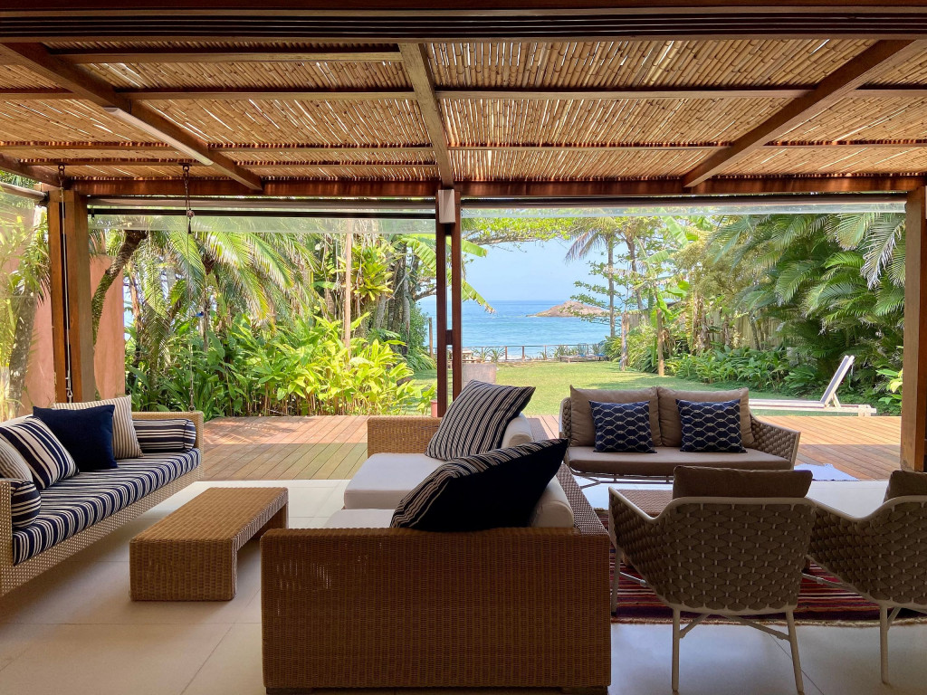 A casa fica localizada no canto direito de Juquehy, ponto mais exclusivo e sossegado da praia.