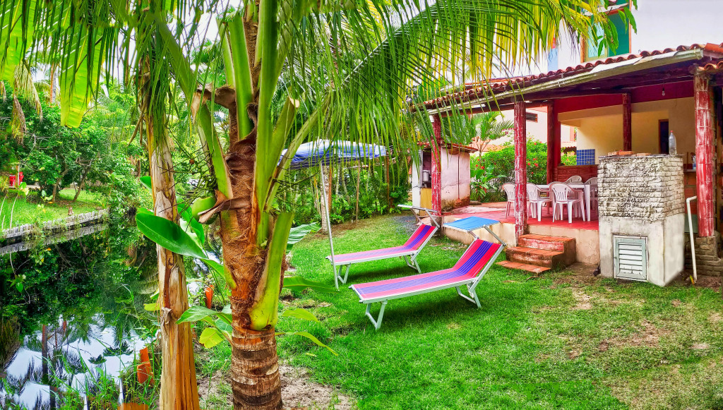 Casa ferias mares, aconchegante lar localizado em Acuipe, uma das mais belas praias do litoral sul de Ilhéus, viva vegetação tropical na vila turística com rio de água doce ferruginosa / medicinal no quintal da casa e vista para o mar.