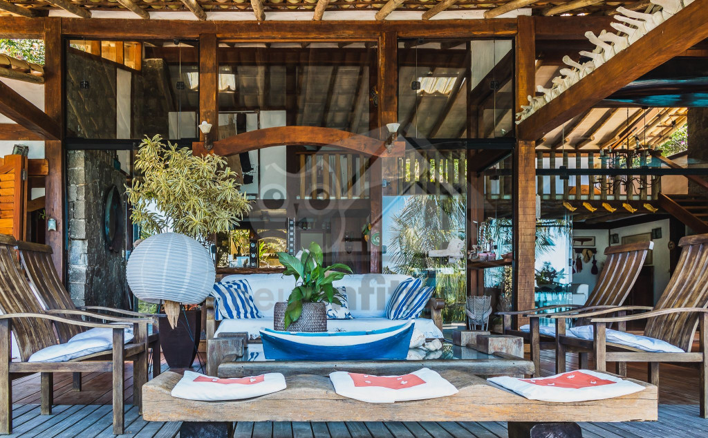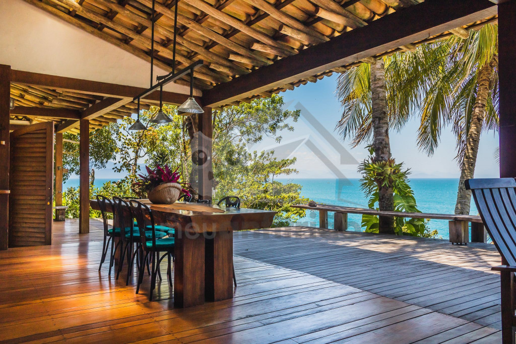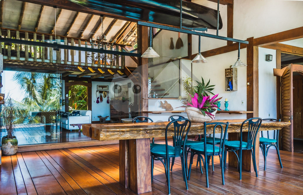 Nossa casa costeira tem como piscina o mar infinito, onde é possível se refrescar através do nosso flutuante ou indo a pé pela praia de maneira bastante cômoda.Cercada por mata nativa, a nossa casa acomoda até 10 pessoas em 4 suítes (todos com mosquiteiras). A sala de estar é ampla, arejada e muito iluminada. A partir dela, temos acesso à área externa com deck e vista do mar. Embora seja uma casa brasileira, está repleta de influências arquitetônicas asiáticas.À noite, a iluminação externa da casa junto ao som do mar cria um clima único e calmo. Temos também um jardim para contribuir ainda mais com a beleza natural da região.A cozinha é completa com todos os utensílios necessários para a estadia, porém, é necessária a contratação dos nossos caseiros por conta da dinâmica da casa (valores à parte). Como a gastronomia caiçara é ponto forte da região, nossos caseiros são especialistas em buscar itens frescos vindos do mar e apoiam nas compras de mercado.