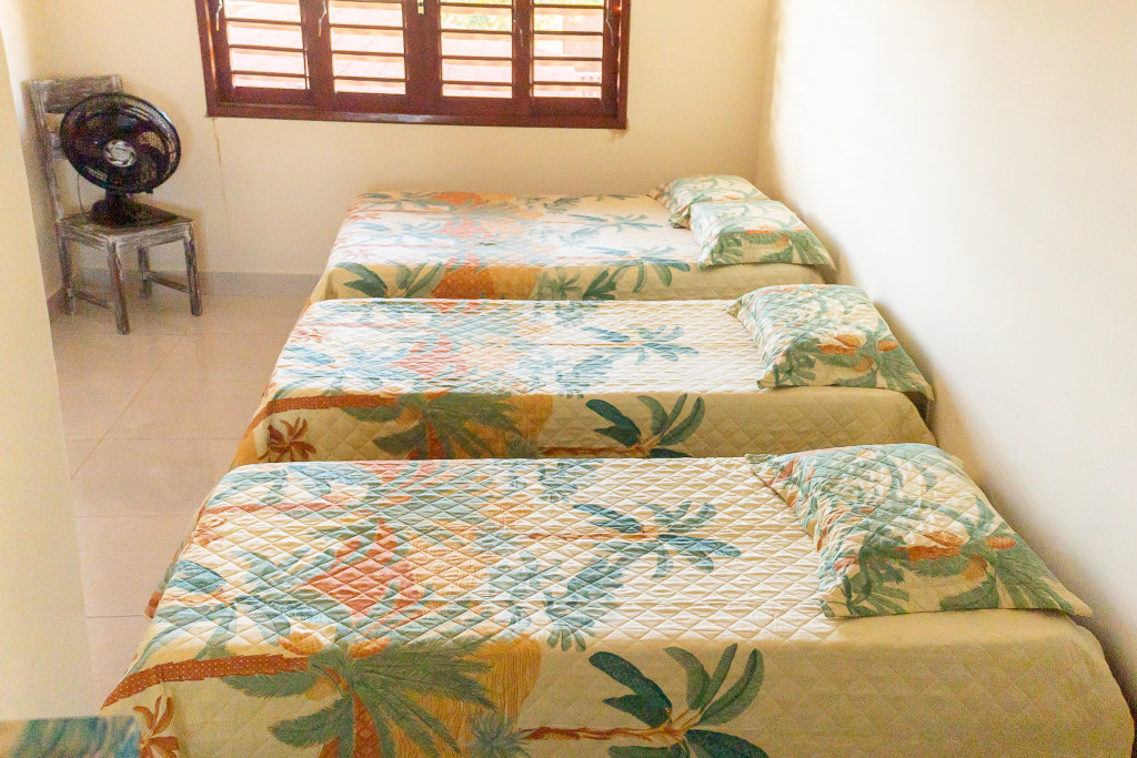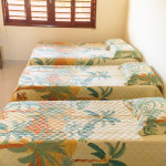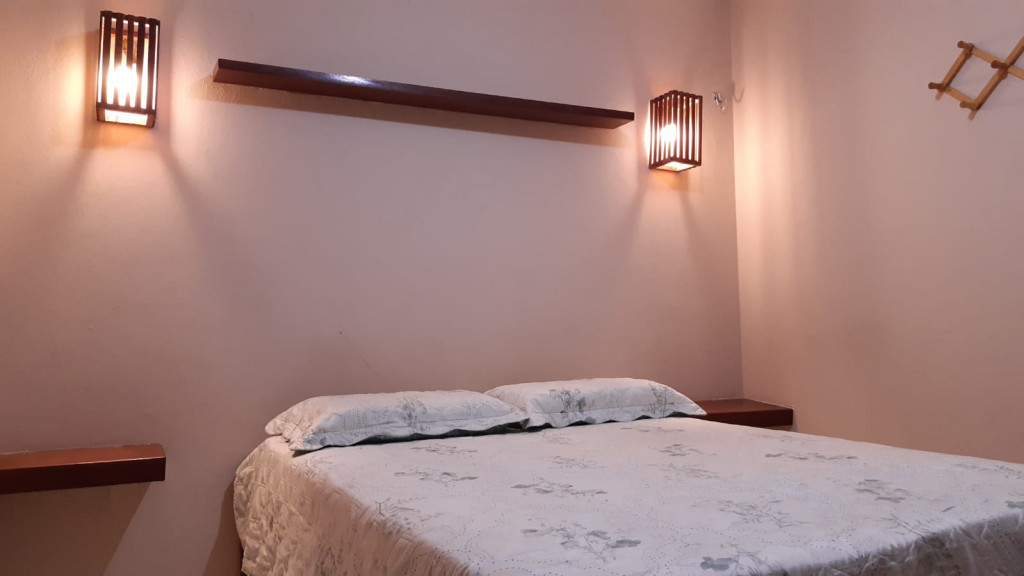 4 quartos amplos. sendo 3 suítes e um quarto com banheiro externo. Equipados com 4 camas de casal e 3 de solteiro, AR CONDICIONADO nas suítes e ventiladores, closet embutido, ferro de passar e roupa de cama acomodando 11 pessoas;