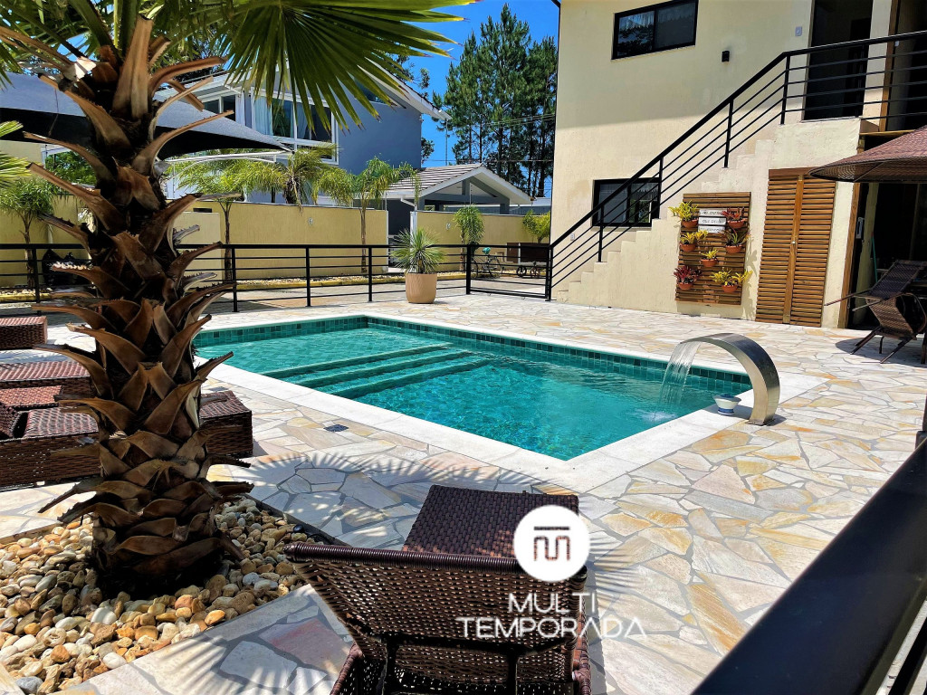 A casa totalmente moderna e repleta de comodidades e elegância, promove bem-estar aos hóspedes e dias inesquecíveis. Perfeito para quem procura descansar e desfrutar de um ambiente inigualável.A casa é projetada para até 12 pessoas com o máximo de comodidade. Ambientes amplos e confortáveis são características do espaço que dispõem de uma suíte e 3 quartos (todos climatizados), 2 banheiros sociais, sala com ventilador de teto, duas cozinhas, duas salas de estar, varanda, sacada, pátio e jardim.Piso Superior: Suíte, domitório, sala e cozinha;Suíte: Cama de casal, colchão de solteiro, TV Smart 40'';Dormitório: Cama de casal e colchão de solteiro;Piso Inferior: 2 dormitórios, sala e cozinha;Dormitório: Cama de casal;Dormitório: Cama de casal;Sala: Sofá-Cama e TV Smart 40''.A propriedade possui um espaço interno de 170 metros quadrados, estacionamento para 4 carros, piscina privativa, redes de descanso nas varandas, varanda com churrasqueira, mesa e pia. Cozinhas completas com fogão, geladeira, micro-ondas, louças e talheres, utensílios de cozinha, eletrodomésticos de primeira linha, liquidificador e sanduicheira. Além disso, a casa possui: Internet WI-FI de 120 mega, canais a cabo nas duas TVs e cobertores e travesseiros. Tudo isso para um melhor conforto dos nossos hóspedes, para que se sintam em casa, em um perfeito refúgio para descansar e desvendar o que há de melhor no Litoral Catarinense.