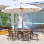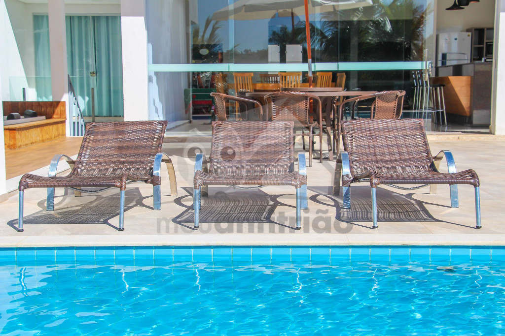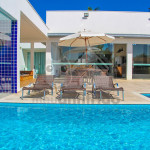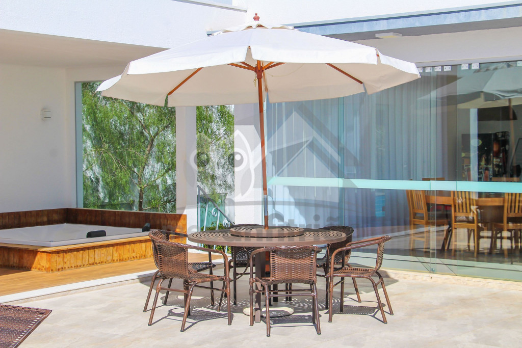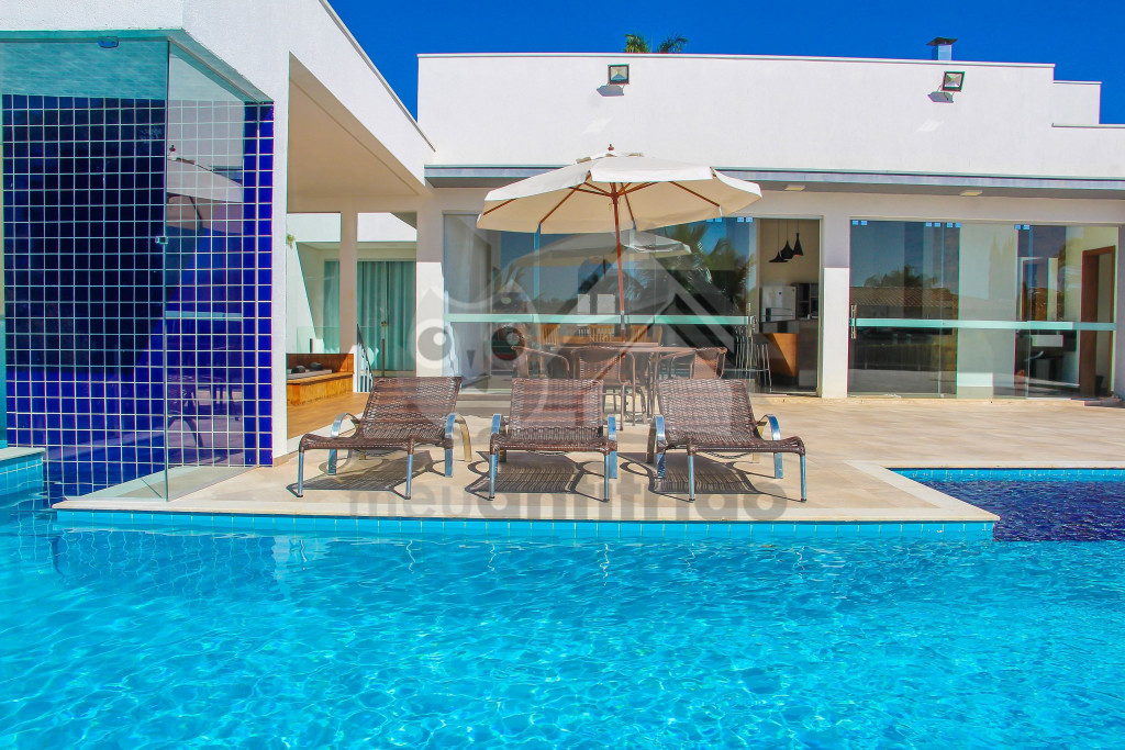Mansão recém construída composta por 7 suítes (5 no térreo e as outras duas na área externa inferior) com ar condicionado, ventiladores e extremo conforto. Você poderá desfrutar de toda a nossa estrutura: home theater com televisão de alta definição, cozinha gourmet, jacuzzi, cervejaria, freezer horizontal, piscina, sauna e jardim panorâmico com vista.