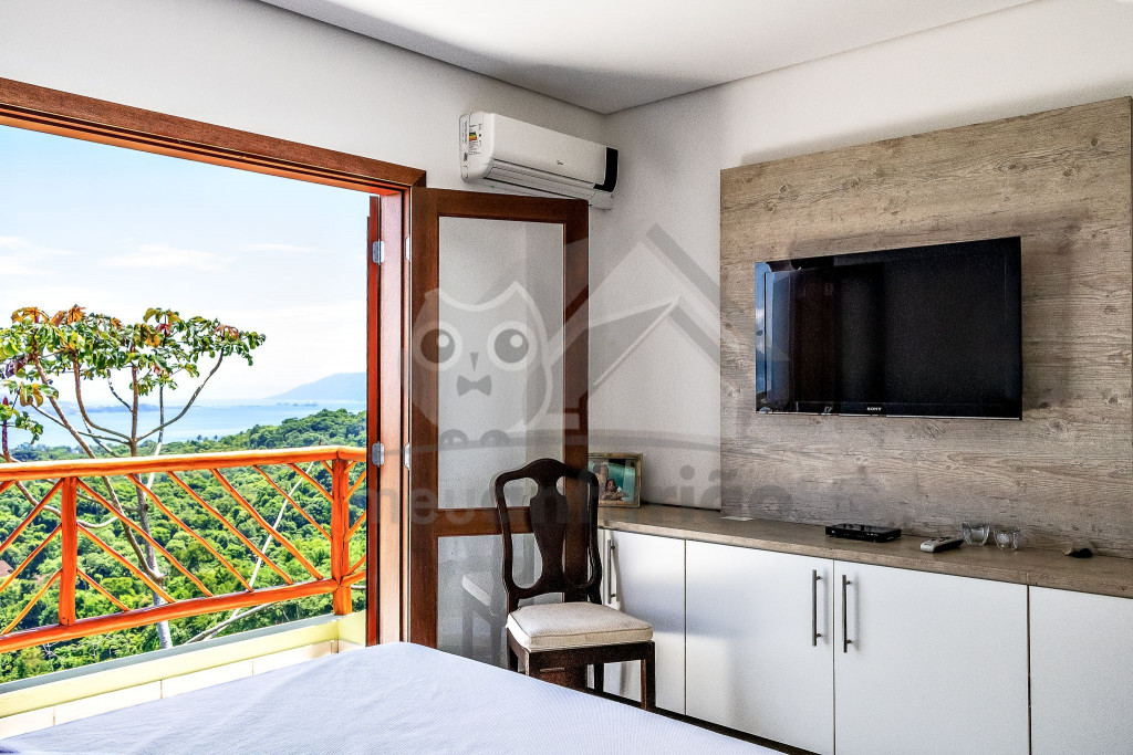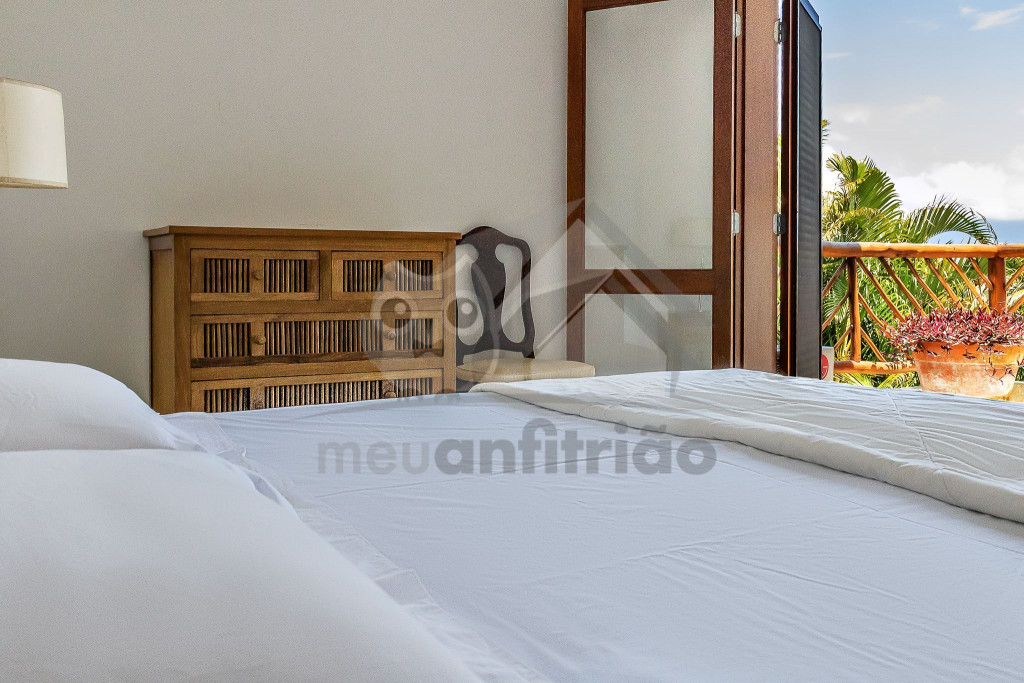No total são 5 suítes: 2 no piso térreo, sendo uma delas sem ar-condicionado e outra suíte de apoio com ar-condicionado, além de outras 3 subindo as escadas para o primeiro andar. Todas as suítes do andar superior possuem ar-condicionado e vista privilegiada do mar.