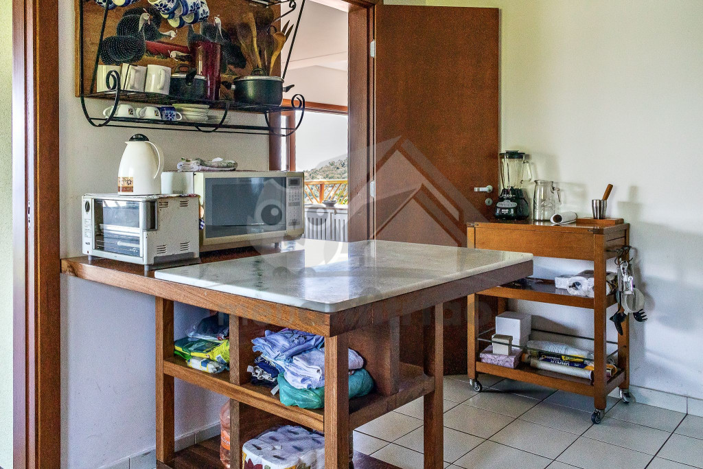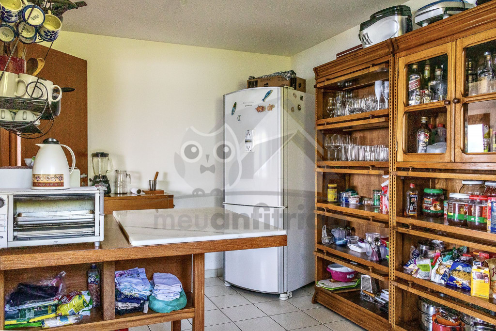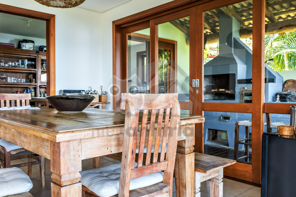 Logo ao entrar na casa, o hóspede será acesso a um amplo espaço com sala de estar, sala de TV e sala de jantar, todos integrados. Nesse mesmo andar, há uma cozinha completa e com todos os utensílios necessários para a estadia.