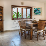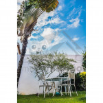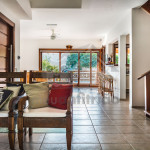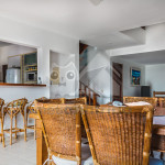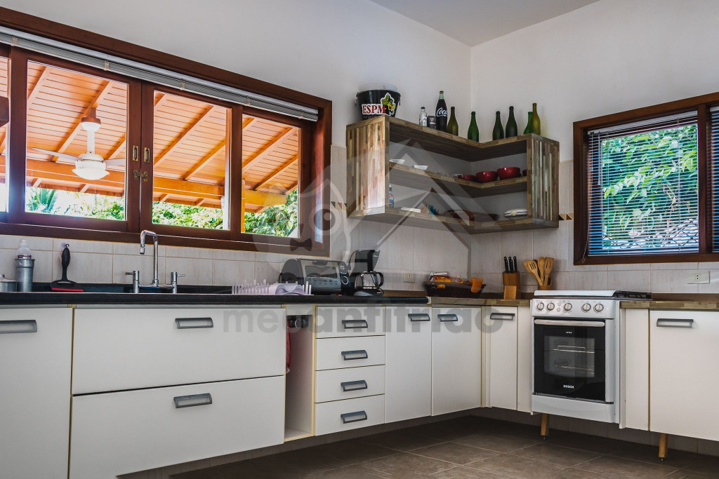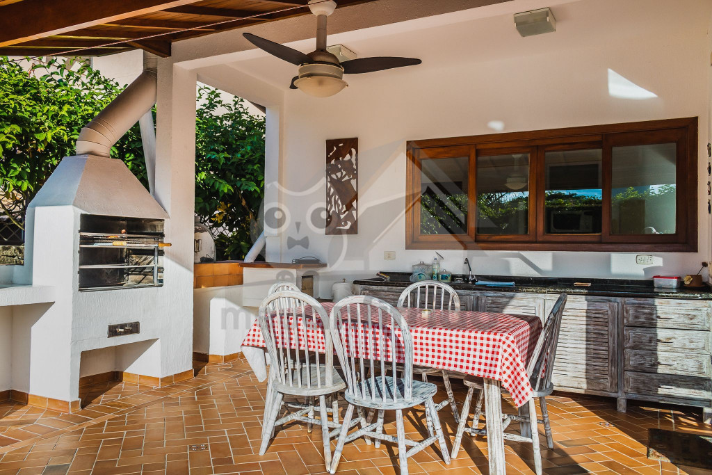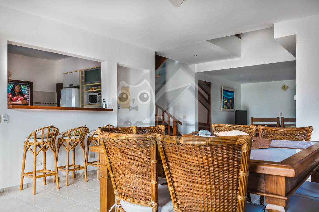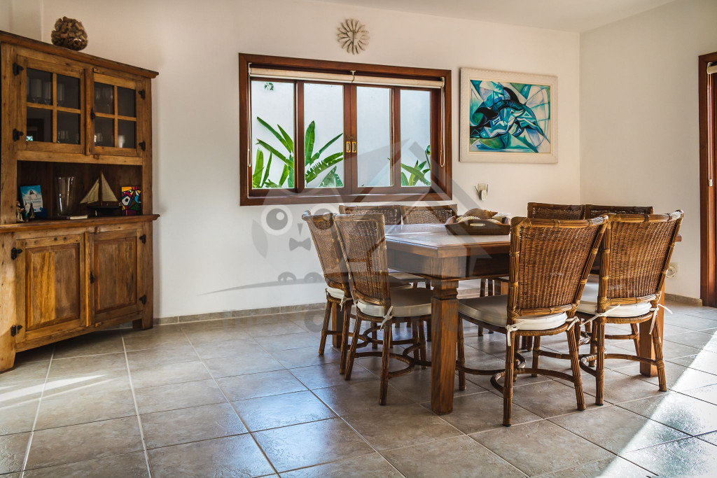 Temos, ainda, uma sala de jantar ampla e arejada que conta com mesa para oito pessoas. As grandes janelas no cômodo fazem com que a iluminação natural seja bem privilegiada. Temos, também, uma sala de estar com televisão, sofá e ventilador de teto, um lavabo e uma cozinha preparada para atender todas as necessidades durante a estadia.