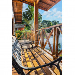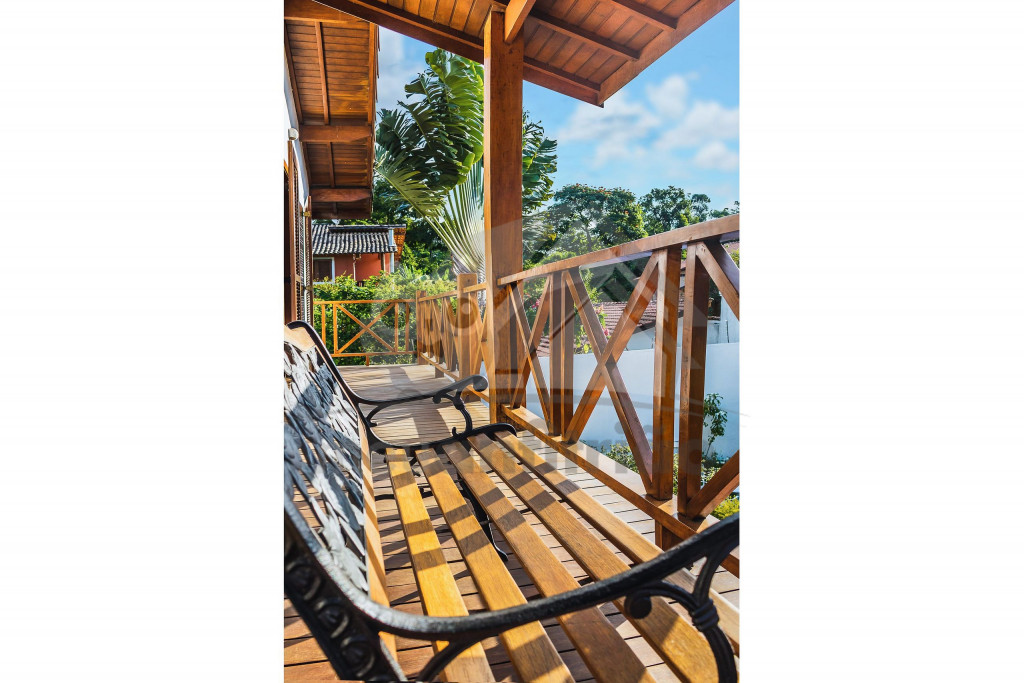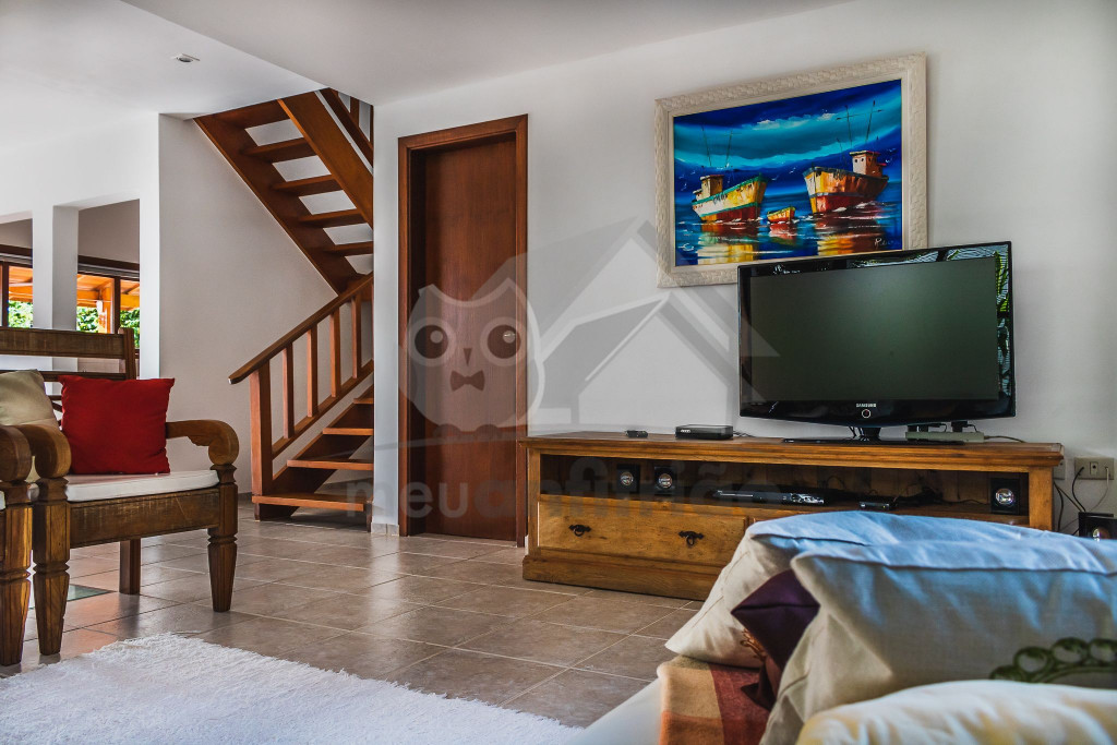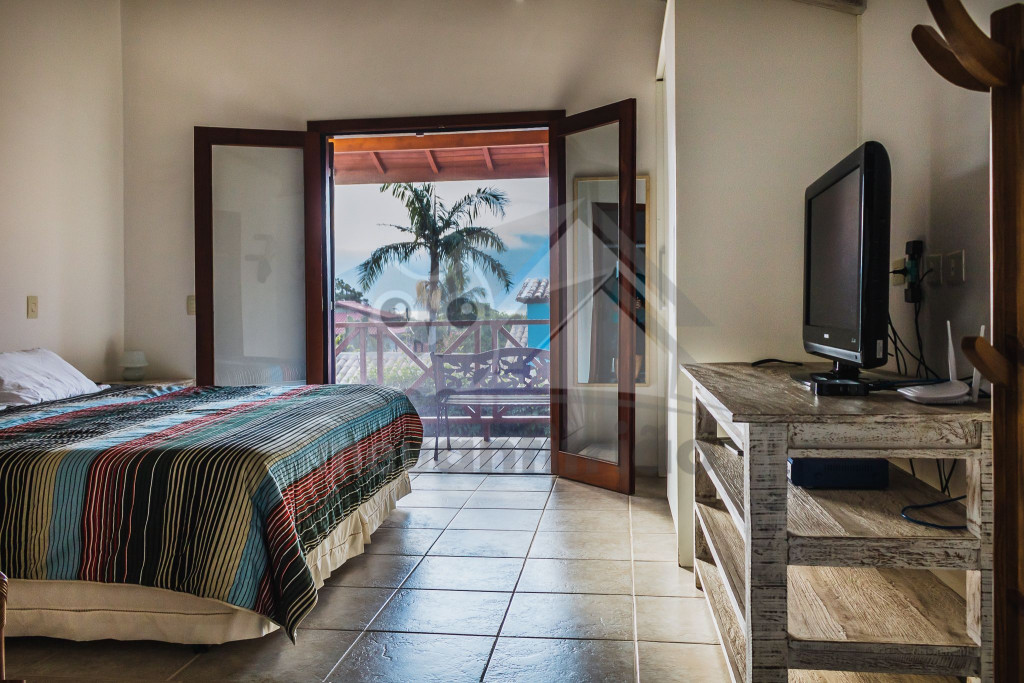 Com uma área de 300m² nossa casa pode acolher, com tranquilidade, grupos de até 9 pessoas, ideal para aproveitar uma boa viagem com família. São, no total, quatro suítes, todas com televisão, ventilador de teto e ar condicionado. Vale ressaltar que dois dos quartos possuem vista para o mar, enquanto os outros dois têm uma vista linda da montanha.