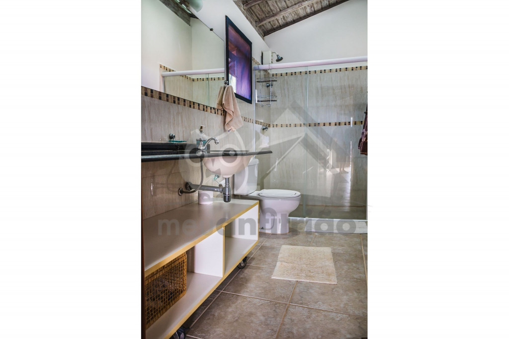 Na área externa, temos um espaço gourmet com churrasqueira completa, forno à lenha, piscina, ducha de água doce e um pequeno jardim para somar à beleza natural que cerca a casa. Além disso, ao final da rua, temos uma Marina pública onde é possível descer pequenas embarcações como botes e jet skis.