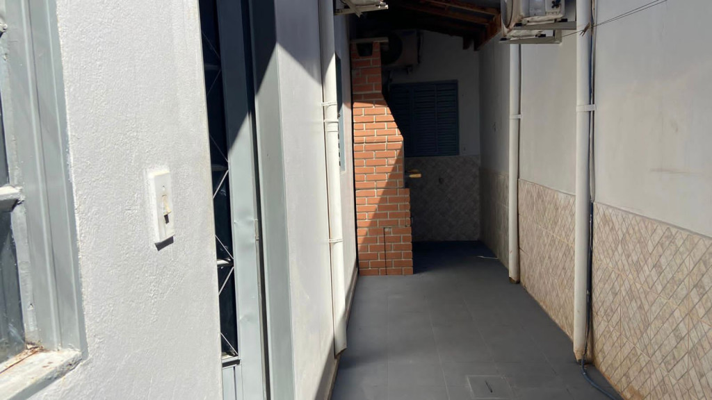 Área externa com churrasqueira e garagem, localizada em um bairro super seguro