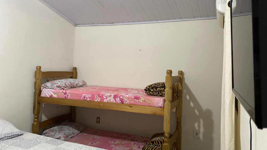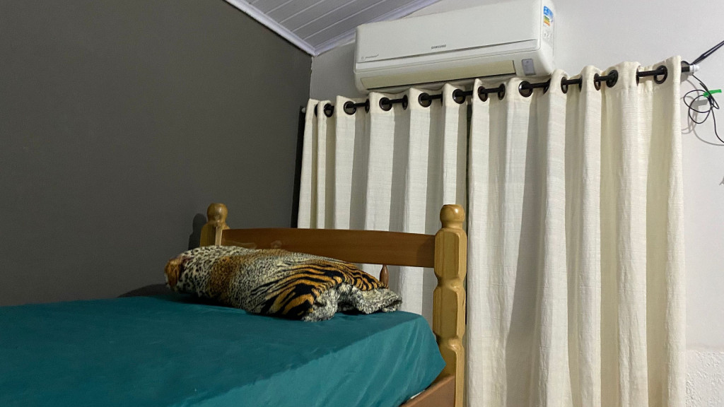 Casa com dois quartos, todos com ar condicionados e TV em um dos quartos.