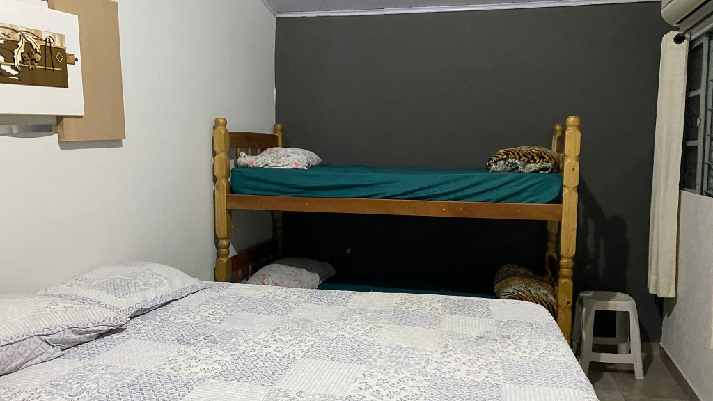 Casa com dois quartos, todos com ar condicionados.