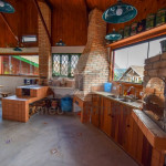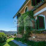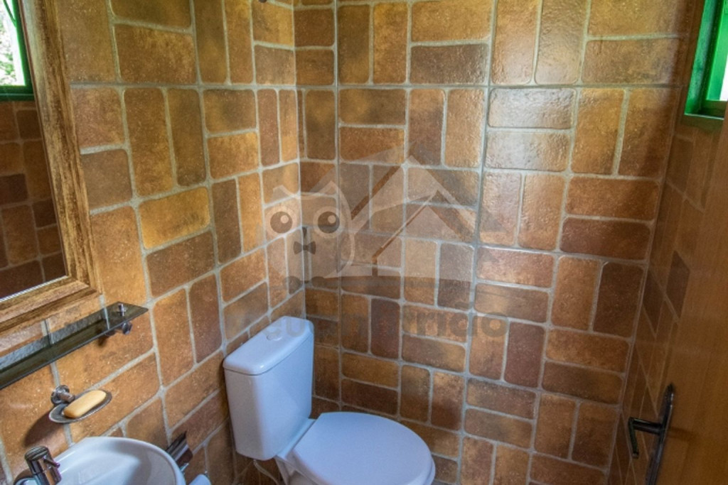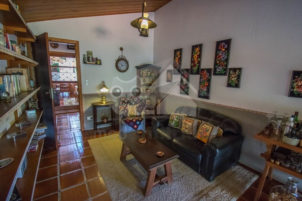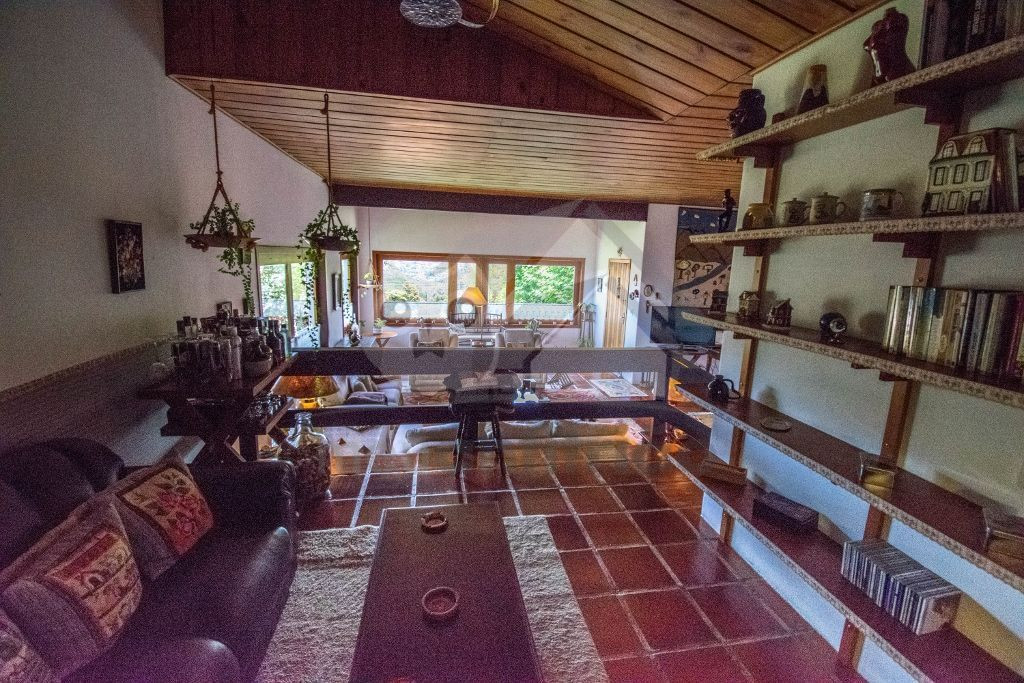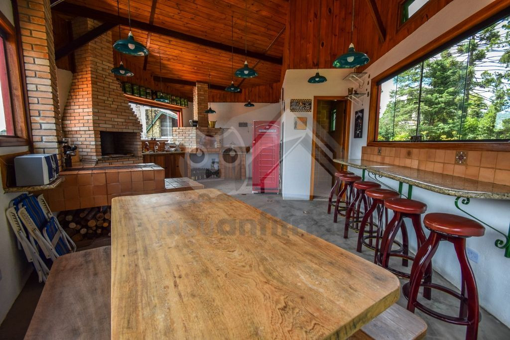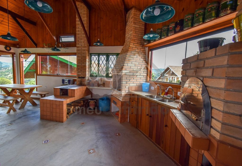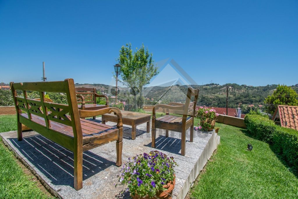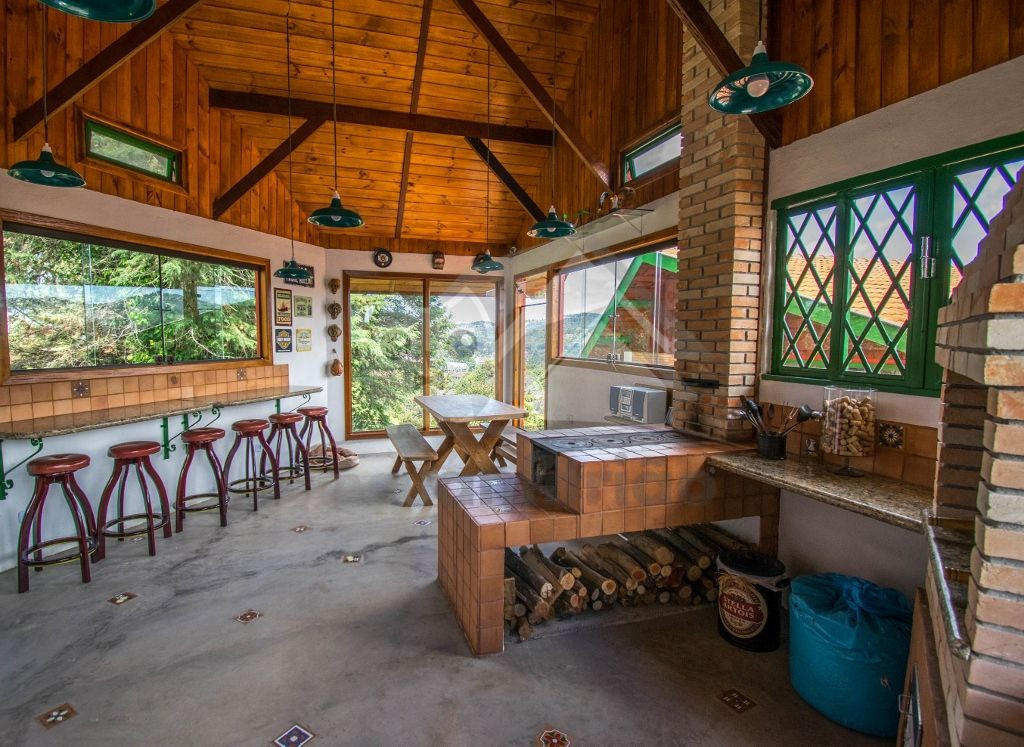 Na área externa, disponibilizamos de um amplo jardim com vista para as montanhas e uma área gourmet que fica subindo as escadas ao fundo da garagem. Este espaço agrega churrasqueira, forno de pizza e fogão a lenha.