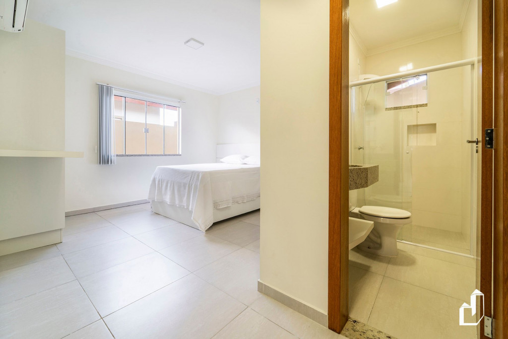 01 suíte com 01 cama de casal e 01 cama auxiliar de solteiro com ar-condicionado;