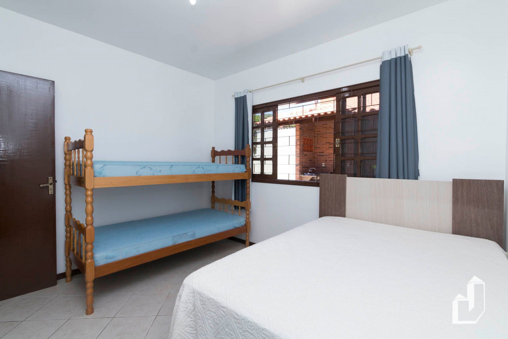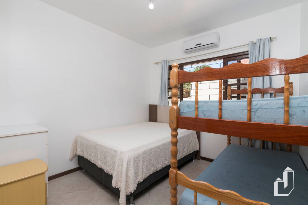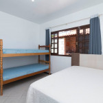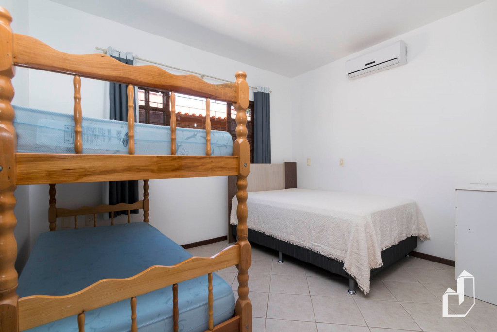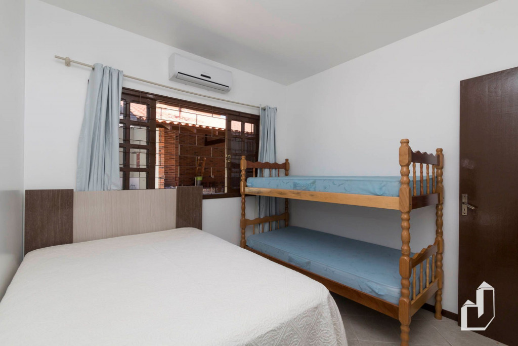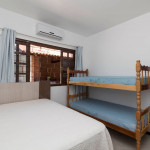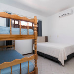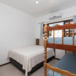 01 dormitório com uma cama de casal e um beliche com ar-condicionado;