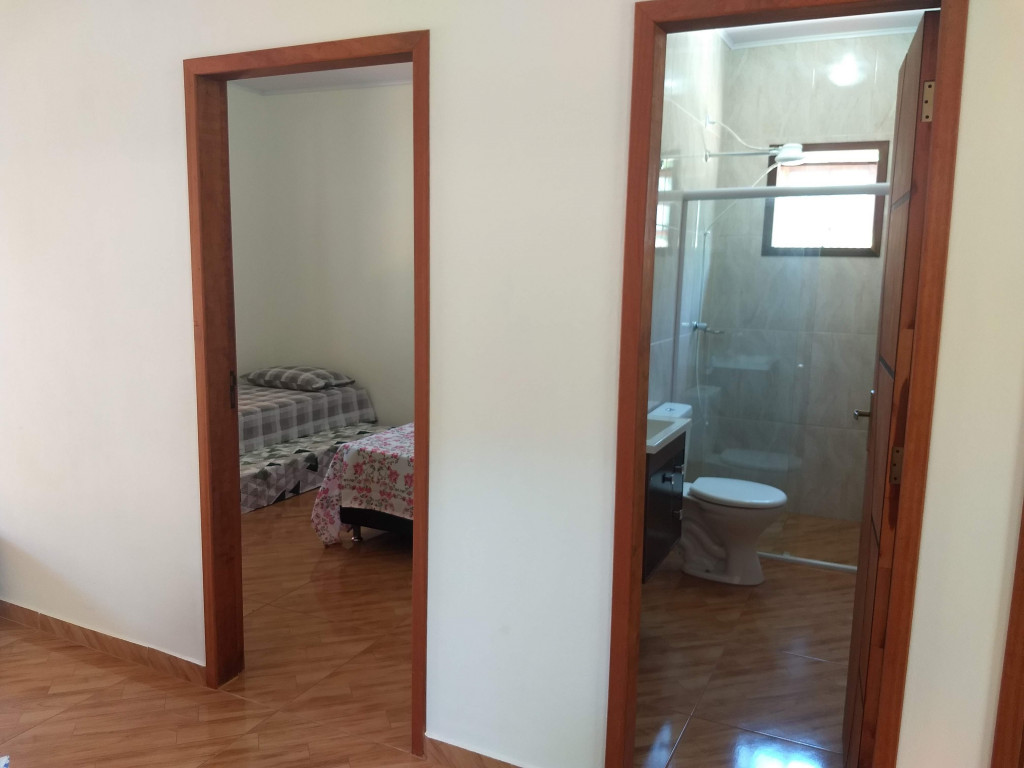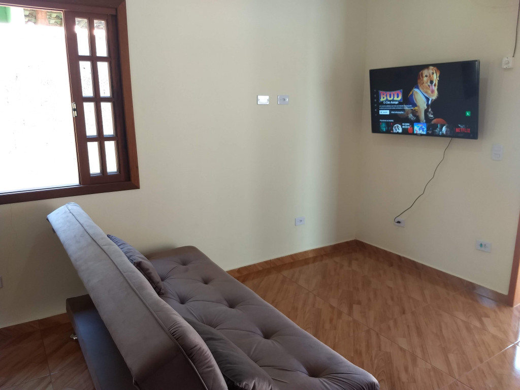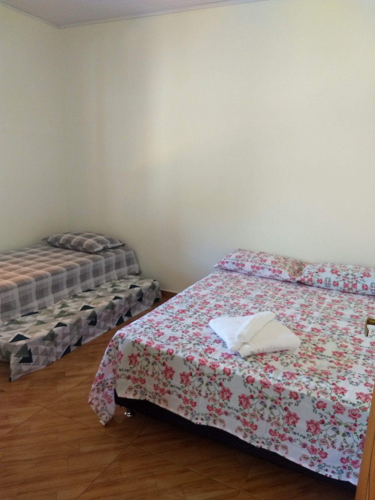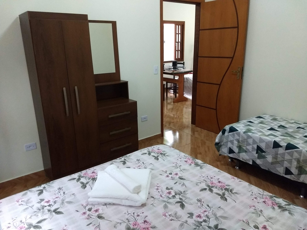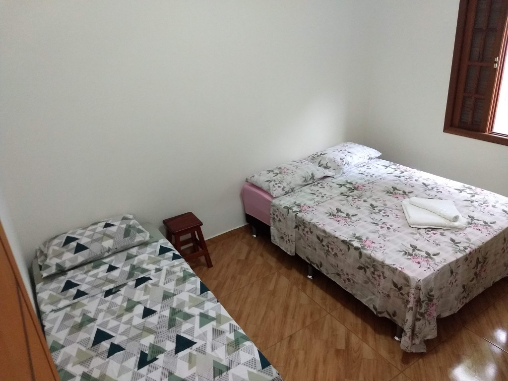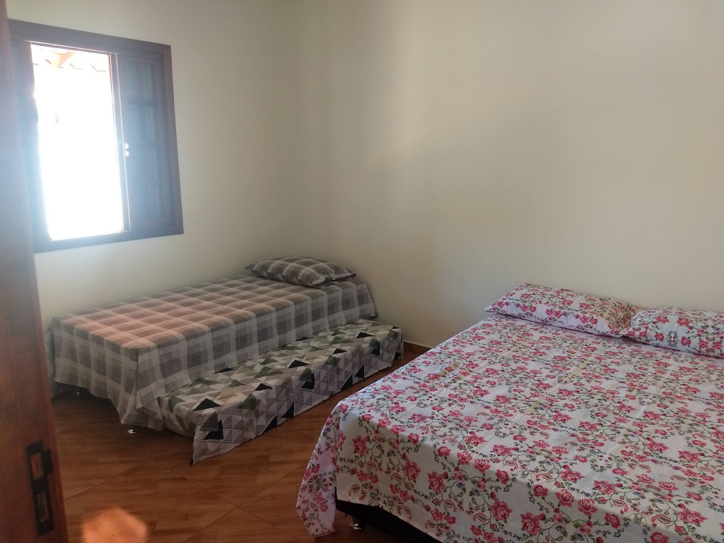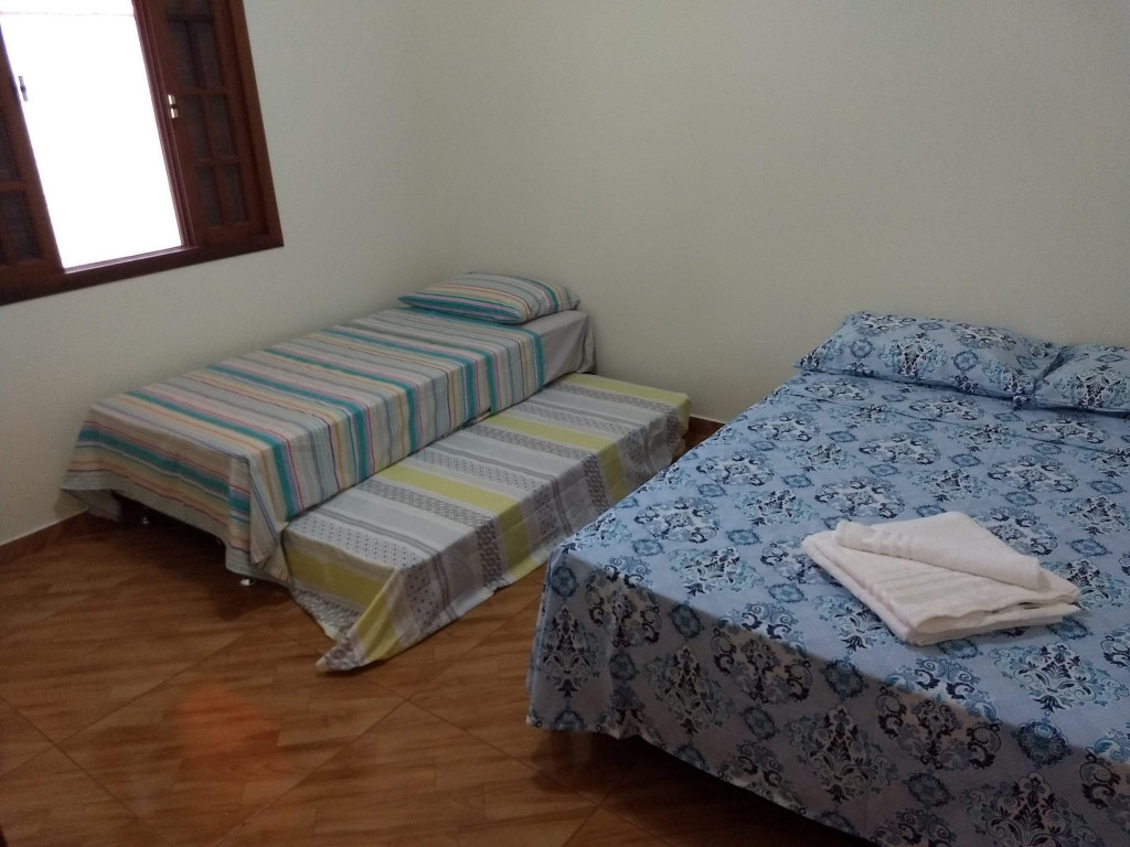 Casa quarto tem 1 cama de casal e 1 bicama e sala 1 sofá cama.