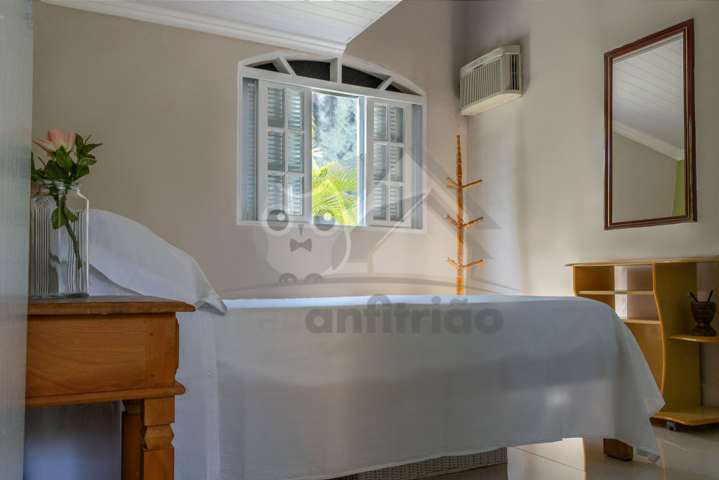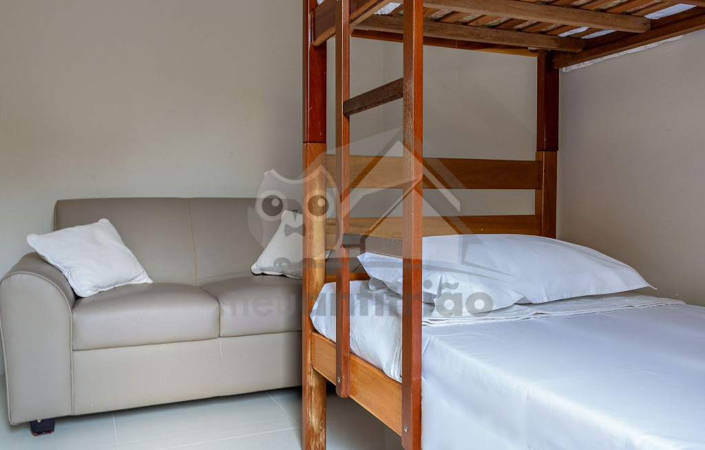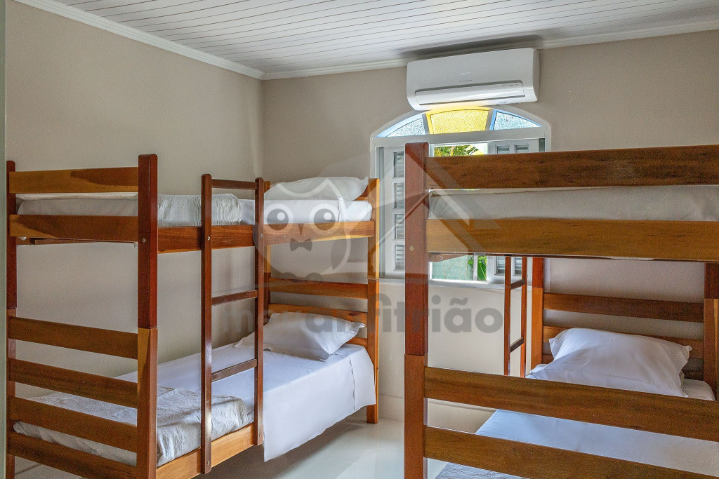 Acomodamos até 6 pessoas em uma suíte com cama de casal e um quarto com 2 beliches. Ambos os cômodos possuem ar-condicionado split
