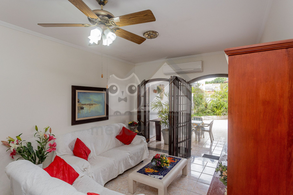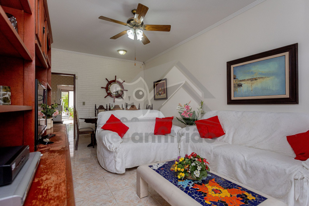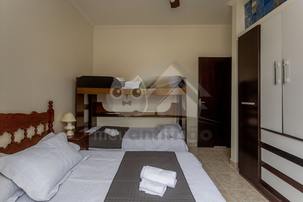 Nossa casa está preparada para receber grupos de até oito pessoas com o máximo conforto, tornando a viagem ainda mais incrível. No total são três quartos, sendo uma suíte com cama de casal e ar condicionado, um quarto duplo com duas camas de solteiro e um quarto quádruplo com uma cama de casal, um beliche e ar condicionado. Nossa sala de estar é ampla e conta com sofás, televisão, ventilador de teto e uma mesa de jantar de seis lugares. A cozinha é equipada com geladeira, fogão, micro-ondas, filtro de água e todos os utensílios necessários para o dia a dia. Além disso, disponibilizamos wifi em toda a casa para que os melhores momentos possam ser compartilhados com quem está longe. A cereja do bolo fica por conta da área externa onde temos um espaço gourmet super agradável com churrasqueira, televisão e outra cozinha completa. Para deixar os momentos em família e amigos ainda mais prazerosos, temos uma grande piscina privativa com espreguiçadeiras e uma cascata. Uma ótima pedida para curtir o sol e relaxar. Disponibilizamos, ainda, três vagas de garagem privativa.