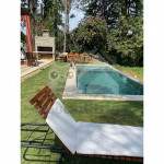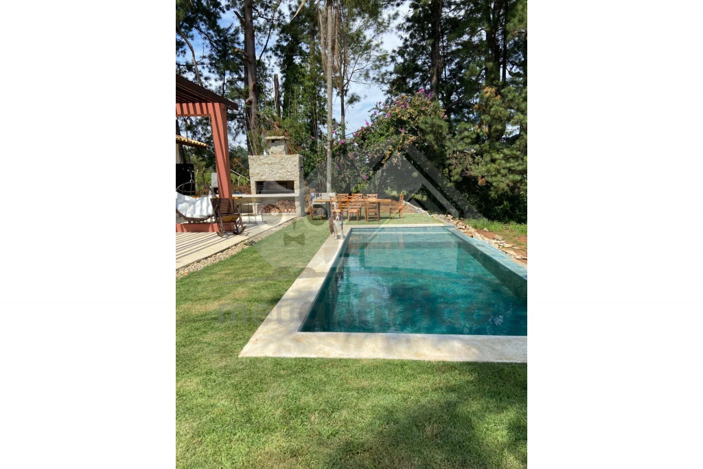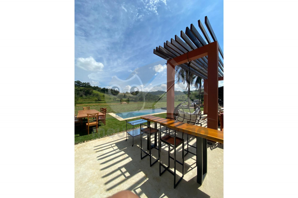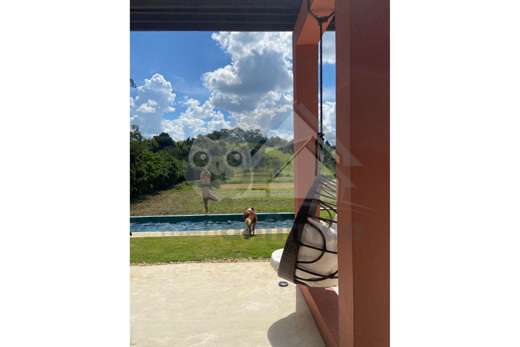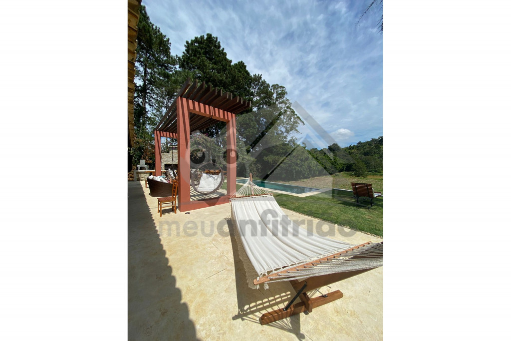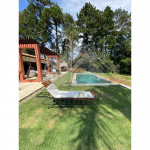 Nossa casa acomoda até 22 pessoas em duas casas com 10 suítes no total, uma casa possui 6 suítes e outra possui 4 suítes e uma área de lazer com piscina de borda infinita, forno de pizza a lenha, churrasqueira de parrilla argentina e cadeiras de balanço suspensas. Na parte externa da casa também se destaca o nosso ranchinho do lago - onde podem ser realizados momentos de meditação ou pesca esportiva.