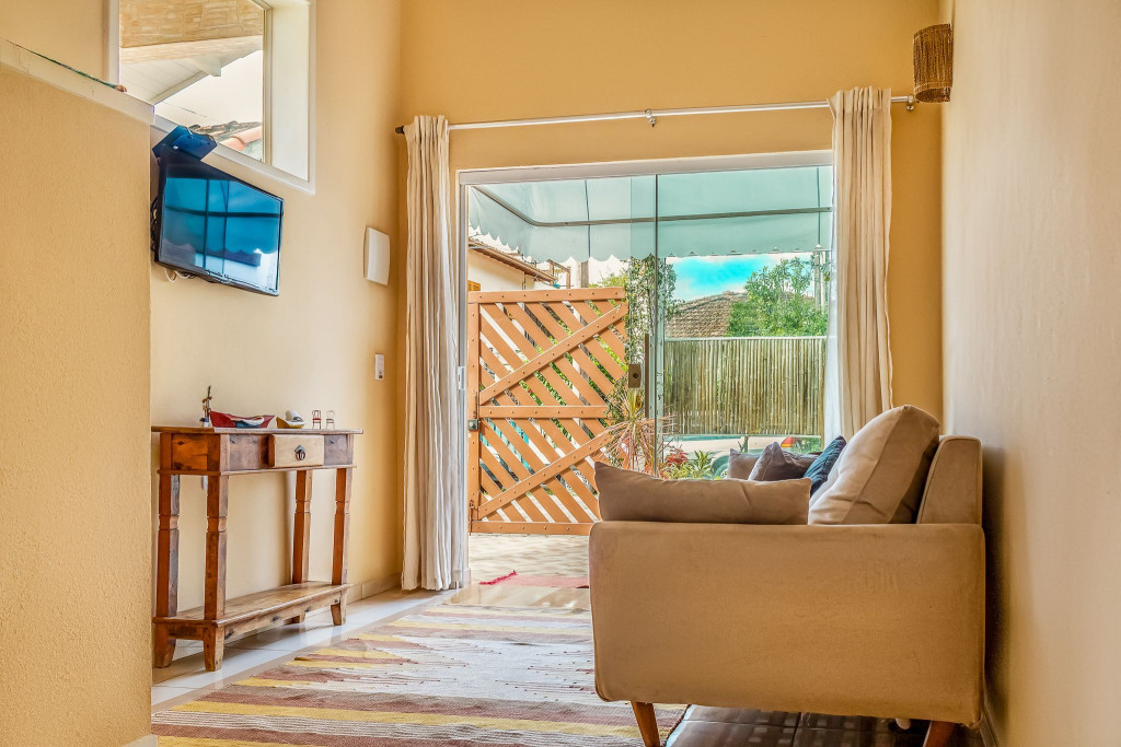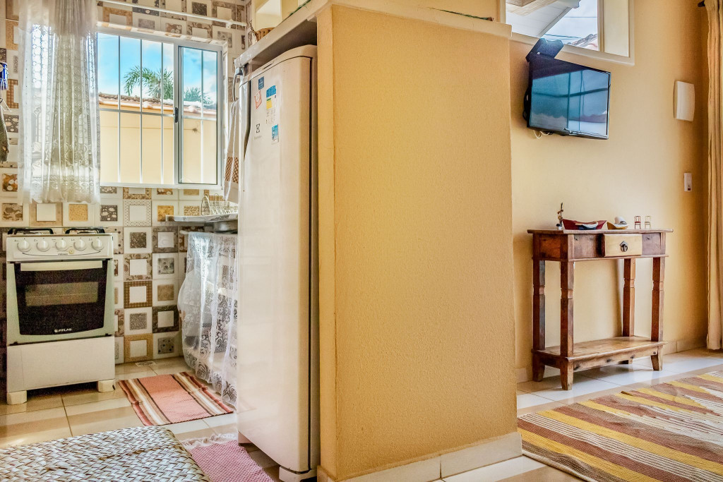 Logo ao entrar na casa, temos uma sala de TV com um sofá. No mesmo ambiente, dispomos de uma cozinha compacta com todos os utensílios necessários para uma estadia prática. Logo em frente fica o corredor com as duas suítes. Ambas possuem ar-condicionado. Também temos WI-FI de alta velocidade.