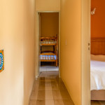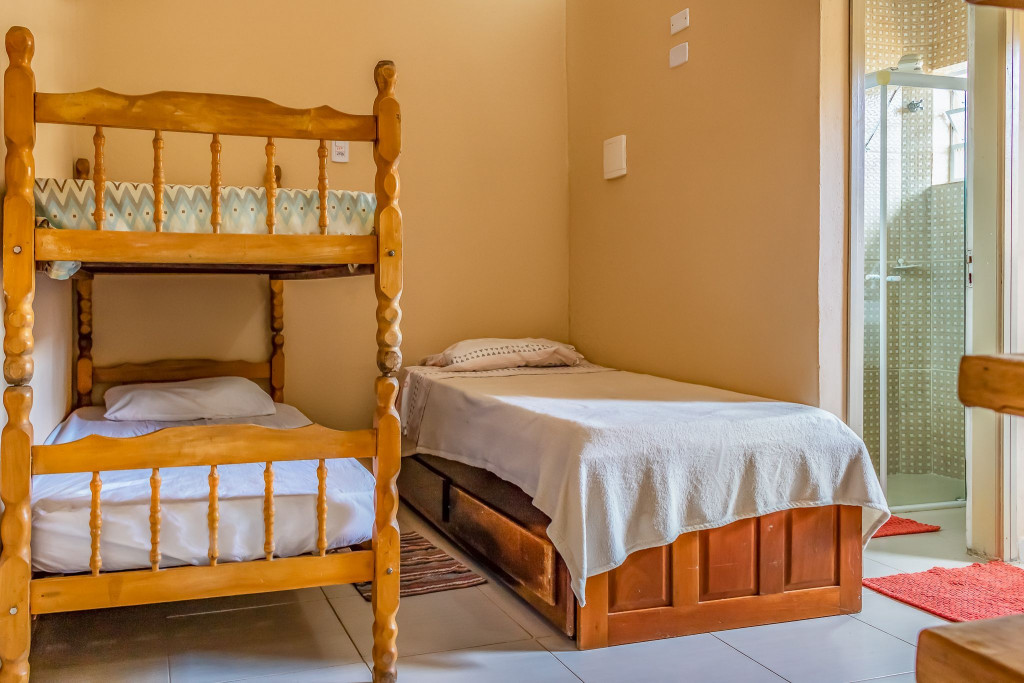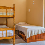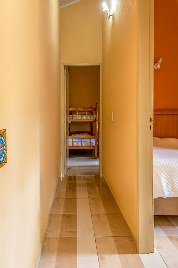 A nossa casa possui aproximadamente 75m2 e acomoda 7 pessoas em 2 suítes, sendo: uma com cama queen e a outra com 2 beliches e 1 cama de solteiro.