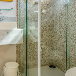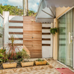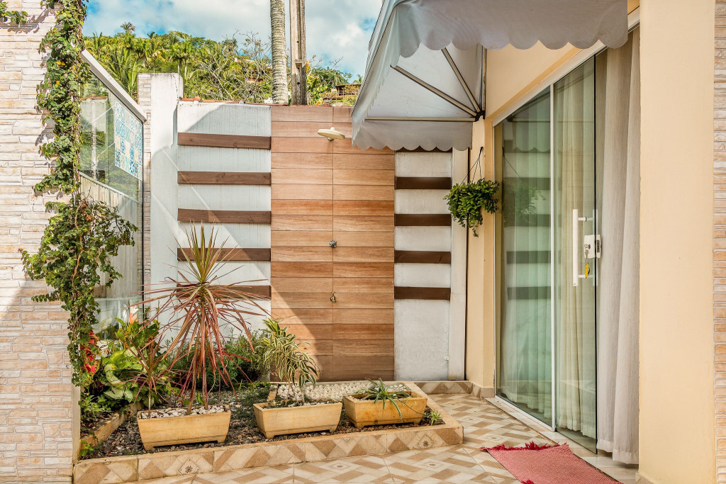 Na parte externa, contamos com mesa, cadeiras, ducha e uma pequena lavanderia.