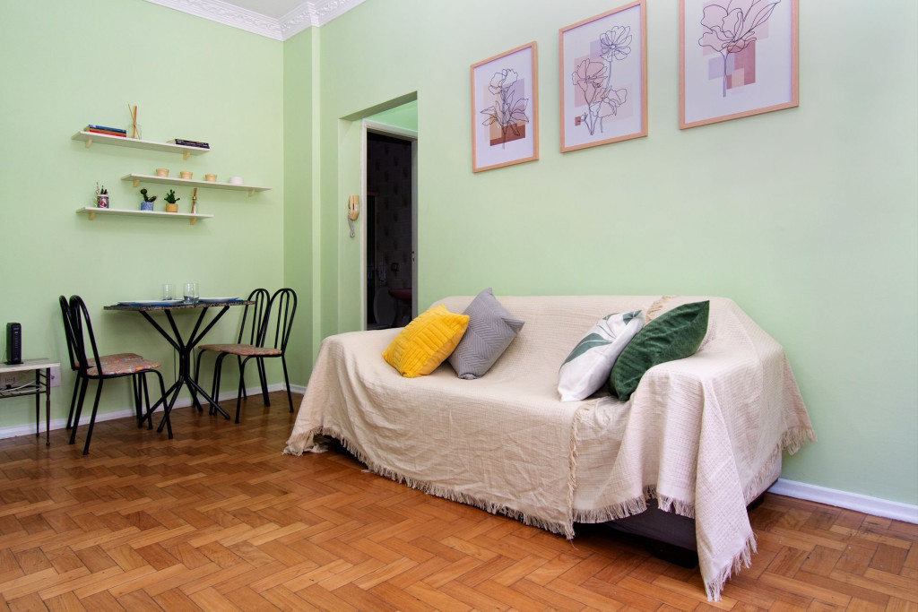 O apartamento é inteiro, exclusivamente seu durante a reserva, no bairro do Catete, que conta com: