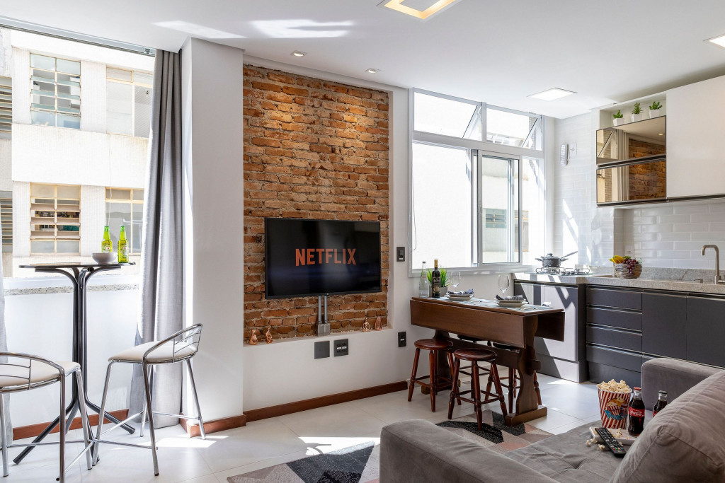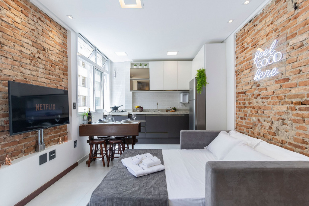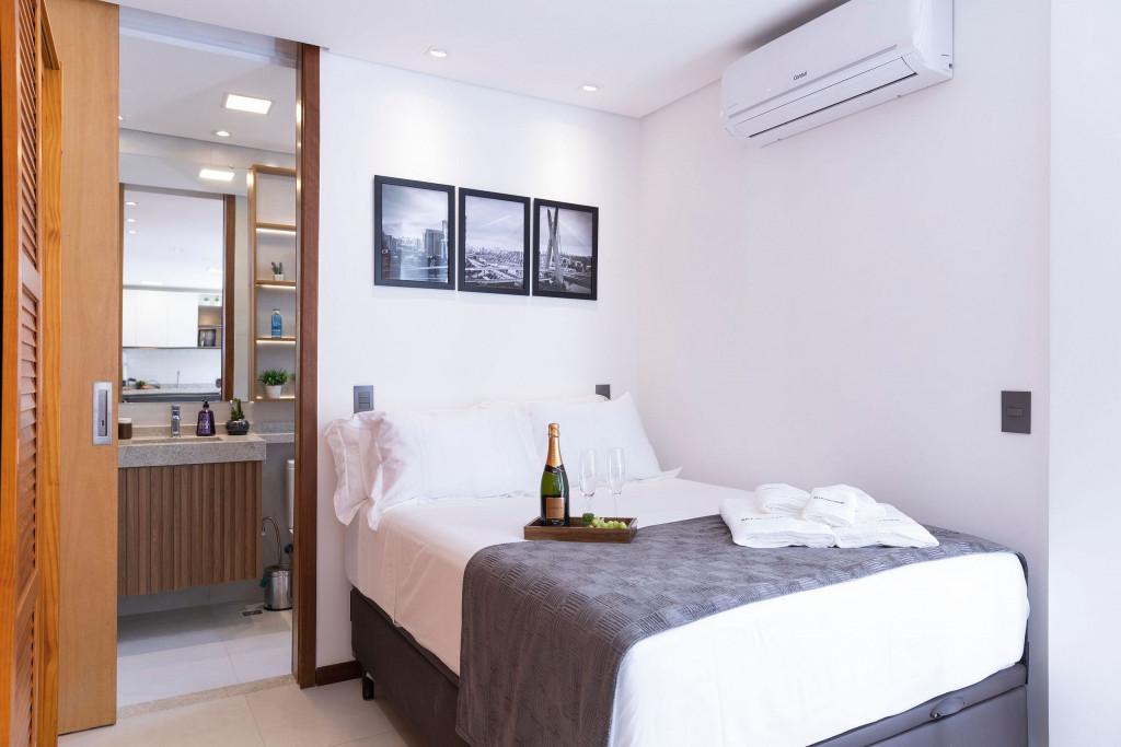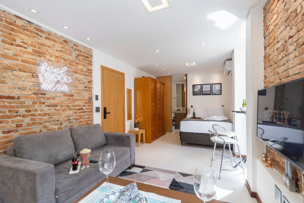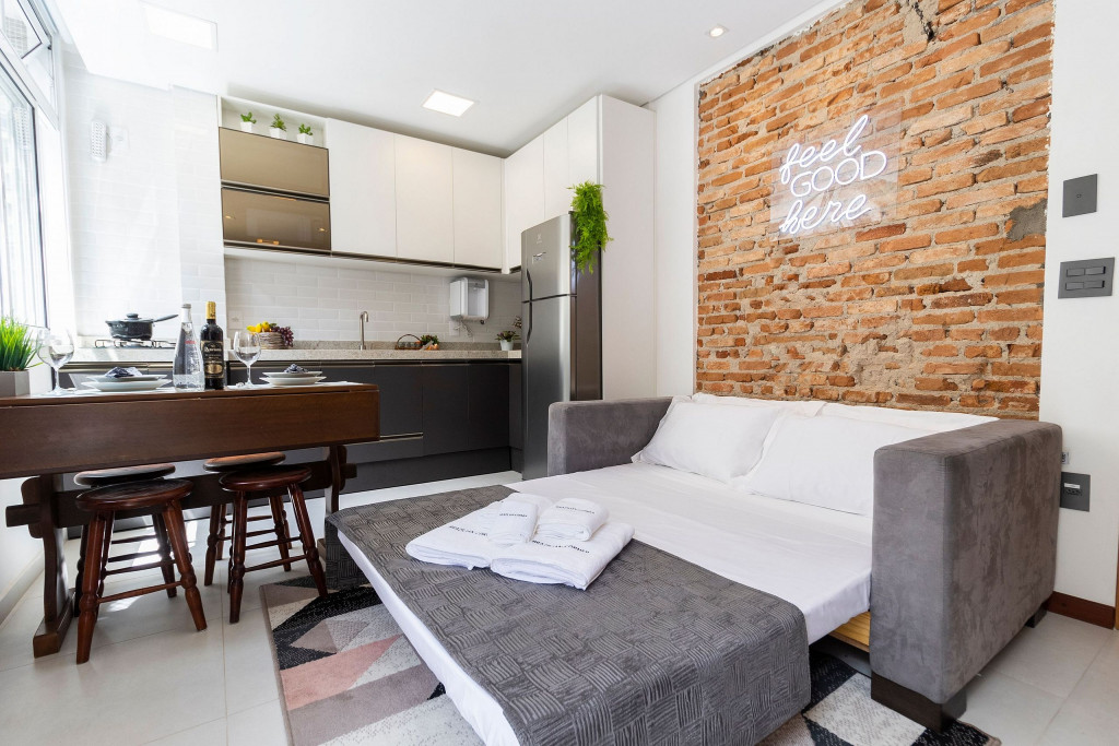 ESTÚDIO: - Smart TV de 43 polegadas: Relaxe e desfrute de uma ampla variedade de entretenimento, no sofá da sala, com nossa Smart TV de alta definição. Assista aos seus filmes e programas favoritos com qualidade excepcional. - Sofá-cama: Com um simples movimento, o sofá-cama se converte em uma superfície ampla e agradável para uma noite de sono tranquila. Seus mecanismos de abertura e fechamento são fáceis de usar, permitindo uma transição suave entre as duas funções, é uma opção prática para acomodar vocês durante a noite. - Cama de Casal: Relaxe e recarregue suas energias em uma cama de casal confortável. Garantimos noites tranquilas e revigorantes para que você possa aproveitar ao máximo cada segundo de seu sono. - Internet Ultra-Veloz: Mantenha-se conectado com o mundo durante sua estadia. Oferecemos acesso à internet de alta velocidade para que você possa compartilhar suas experiências e manter-se atualizado em todos os ambientes. - Ar condicionado: Mantenha-se fresco e confortável durante toda a sua estadia. Nosso imóvel possui ar condicionado para garantir uma temperatura agradável em todos os ambientes. - Guarda-Roupa: Nosso imóvel oferece um guarda-roupa amplo, permitindo que você organize suas roupas e pertences com facilidade. Desfaça as malas e sinta-se verdadeiramente em casa. - Mesa de Jantar para 2 pessoas: Compartilhe momentos especiais com rfeições memoráveis em nossa mesa de jantar. - Fechadura Digital: Priorizamos sua segurança e tranquilidade. Nossa locação conta com uma fechadura digital de alta tecnologia, proporcionando praticidade e evitando a preocupação com chaves. COZINHA: Nossa cozinha está muito bem equipada. Prepare deliciosas refeições na nossa cozinha completa e moderna. Equipada com todos os utensílios e eletrodomésticos necessários, você terá liberdade para explorar suas habilidades culinárias. - Taças de vinho: Brinde momentos memoráveis com taças de vinho prontas para receber suas celebrações. - Microondas: Prepare suas refeições com praticidade e rapidez, tendo à disposição um micro-ondas moderno e funcional. - Máquina Nespresso: Desperte seus sentidos com uma xícara de café fresco todas as manhãs. Em nossa locação, disponibilizamos uma máquina Nespresso para que você possa apreciar a sua bebida preferida. No entanto, é necessário trazer suas próprias cápsulas de café, pois não fornecemos. - Fogão: Sinta-se em casa na nossa cozinha, completa com um moderno fogão, proporcionando a flexibilidade para preparar suas refeições favoritas. Seja um mestre culinário ou alguém que gosta de experimentar novos sabores, você terá tudo o que precisa à sua disposição. - Filtro de Água: Pensando na sua saúde e bem-estar, nossa locação por temporada possui um filtro de água, garantindo que você tenha acesso a água limpa e pura durante toda a sua estadia. BANHEIRO: - Secador de Cabelo: Para sua conveniência, disponibilizamos um secador de cabelo de qualidade em nosso imóvel. Dessa forma, você não precisa se preocupar em trazer o seu, permitindo que você viaje mais leve e confortável. - Chuveiro elétrico: Proporcionando conforto em todos os detalhes, nossos chuveiros são elétricos, garantindo um banho quente e relaxante em qualquer momento do dia. - Máquina lava e seca: Mantenha suas roupas limpas e frescas durante toda a estadia com nossa máquina lava e seca. ADMINISTRAÇÃO DO IMÓVEL: O Imóvel é administrado pela Brazilian Corner, uma empresa nacional que oferece aos seus clientes, que viajam a lazer ou negócios, a experiência de locar imóveis únicos durante uma temporada. As residências são planejadas para prover grande conforto. Nosso escritório fica no bairro Vila Madalena em São Paulo. Desde 2018, a Brazilian Corner é pioneira em seu ramo, pois além de proporcionar imóveis bem estruturados, também é responsável por toda a logística e suprimentos básicos que compõe cada uma de suas residências, o que as torna extremamente funcionais. Nosso grande diferencial é a boa comunicação e a seriedade com que atuamos para resolver qualquer entrave que possa acontecer antes, durante, e/ou após a estadia de nossos clientes. Nossos colaboradores são treinados e têm as ferramentas necessárias para proporcionar um excelente nível de serviço. Os apartamentos e casas são limpos por nossas equipes especializada, a nossa roupa de cama e banho são lavadas e higienizadas em lavanderias profissionais. Mantemos o profissionalismo em tudo o que fazemos para, dessa forma, garantir a tranquilidade e confiança de nossos clientes. COMPROMISSO COM A INCLUSÃO: Na Brazilian Corner, acreditamos que a diversidade é o que torna o mundo um lugar incrível para explorar. Celebramos a pluralidade de culturas, identidades e experiências de vida. Para a comunidade LGBTQIA+, este é um lar longe de casa, onde você pode ser autêntico e verdadeiro consigo mesmo, onde a diversidade é celebrada e a igualdade é nossa prioridade. Sabemos que viajar nem sempre é fácil, e queremos tornar a sua estadia o mais confortável possível. Não importa se você é um viajante solo, um casal ou um grupo de amigos, este espaço foi projetado com amor para receber a todos, independentemente de sua orientação sexual, identidade de gênero ou expressão. Este é o seu espaço seguro para relaxar e aproveitar ao máximo sua estadia.