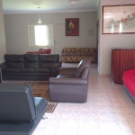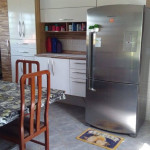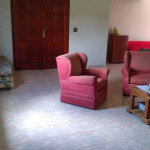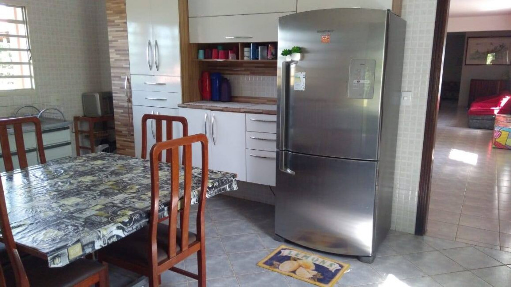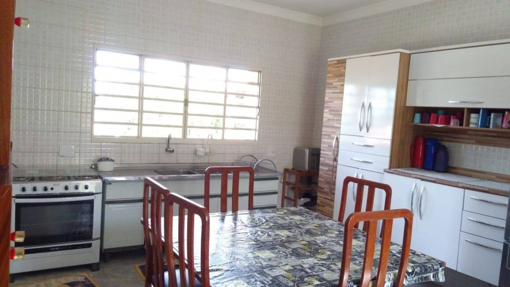 COZINHA COM TODOS OS UTENSÍLIOS, MESAS E CADEIRAS. ÁREA DE SERVIÇO COM MAQUINA DE LAVAR, TANQUE E VARAL. SALA COM POLTRONAS, SOFÁ E TV.