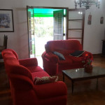 SALA COM SOFÁ, SOFÁ CAMA, POLTRONA, TV, MESA E CADEIRAS.