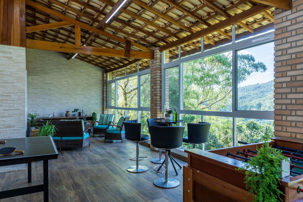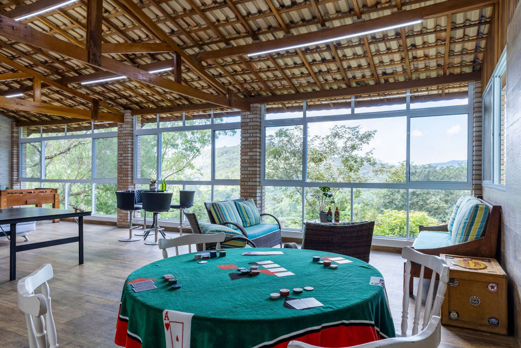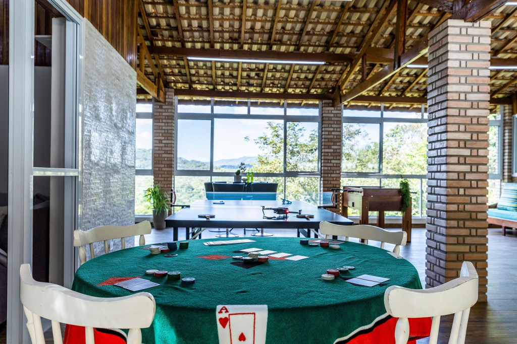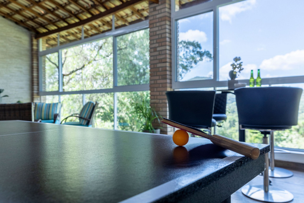 - Área de estar: O andar de cima da casa é um paraíso de entretenimento. Desfrute de uma sala de TV acolhedora, espaços de convivência convidativos, uma mesa de ping pong para competições animadas, pebolim para desafios emocionantes e uma mesa para jogar cartas. Além disso, uma ampla cozinha e uma grande mesa estão à disposição para refeições deliciosas e momentos de convívio. Um lavabo também está disponível para maior comodidade.