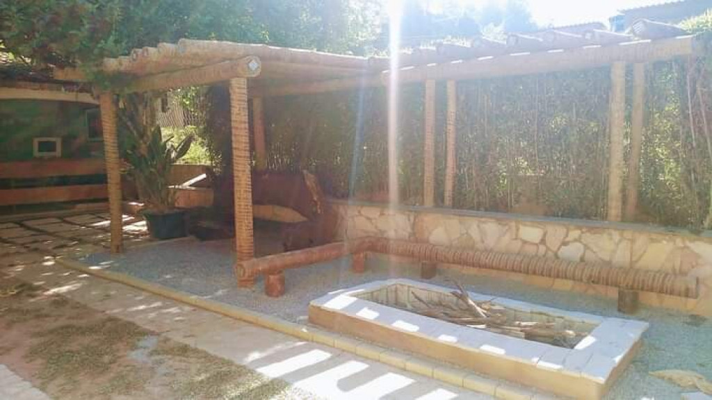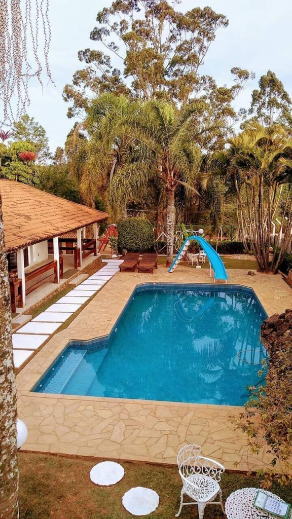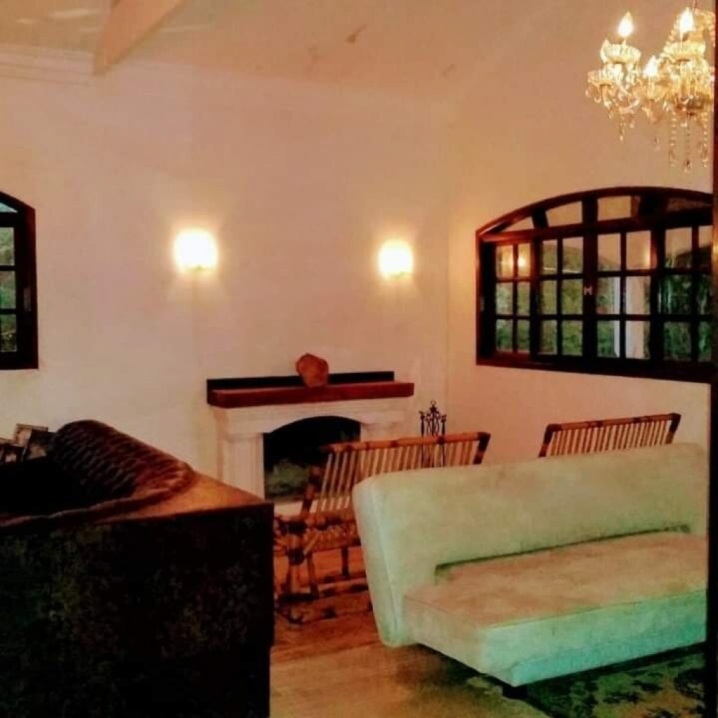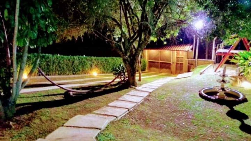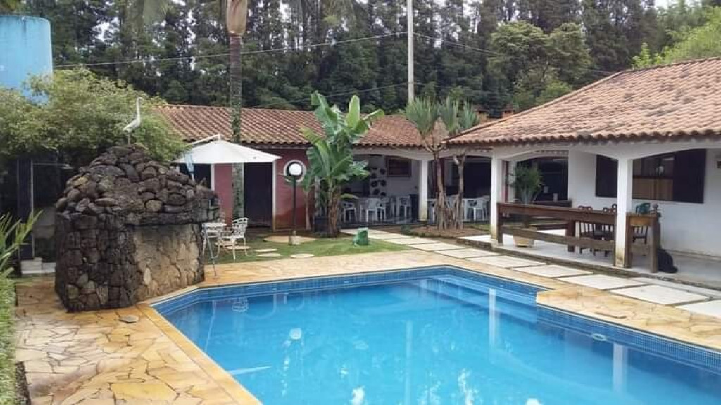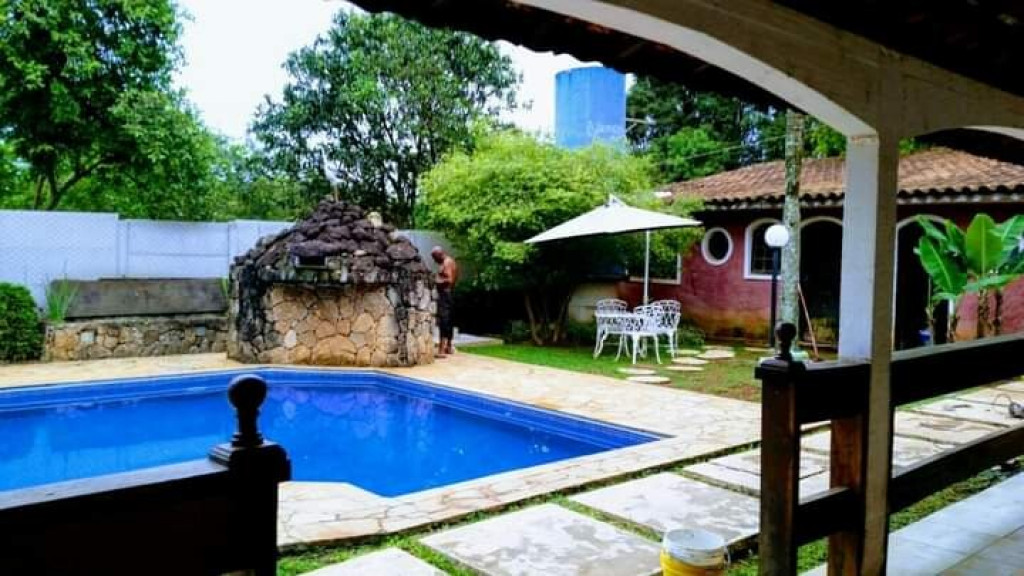 SALA COM LAREIRA, SOFAS. AREA EXTERNA COM PISCINA, DUCHA, CHURRASQUEIRA, SALÃO DE JOGOS, QUADRA DE ESPORTES, GARAGEM PARA 7 CARROS.