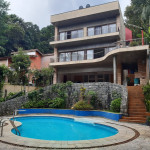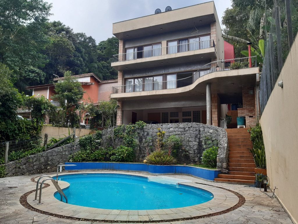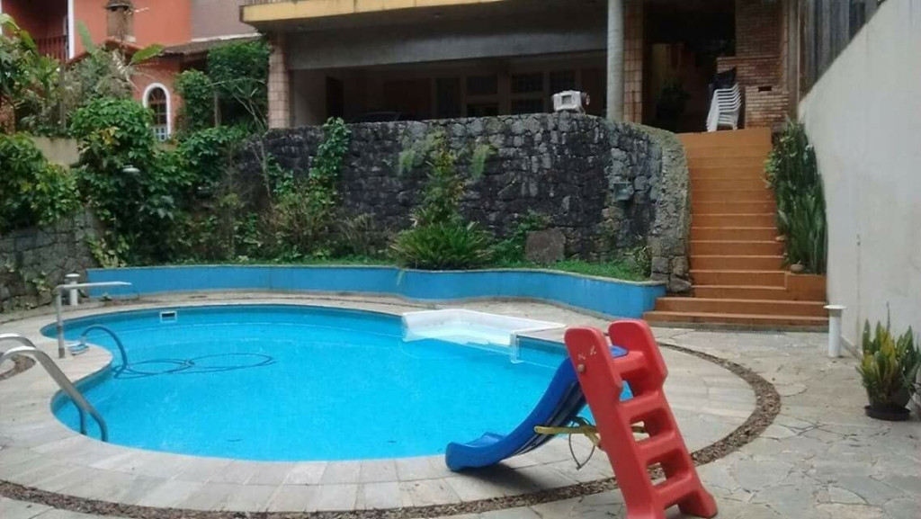Com aproximadamente 450 m² toda mobiliada, bela arquitetura, bela vista, piscina, churrasqueira, quadra poliesportiva, playground, garagem para 4 carros cobertos e outros descobertos, wc de acesso, sauna, WC vestiário para piscina e quadra, sala espaçosa com 2 ambientes, acopladas a uma grande varanda q faz a extensão da sala proporcionando bela vista da natureza, Lavado, cozinha, dispensa, área de serviços, sala íntima de TV, 4 dormitórios, sendo 1 suíte superior, 1 suite inferior, WC social p os 2 dormitórios.