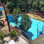 Amplo espaço de jardim e terrenos com 2.400 m² aproximadamente.