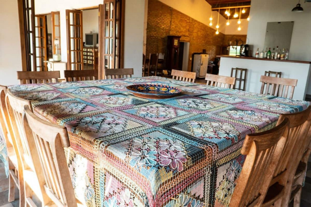O espaço possui duas casas grandes que acomodam até 26 pessoas em camas