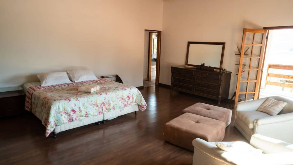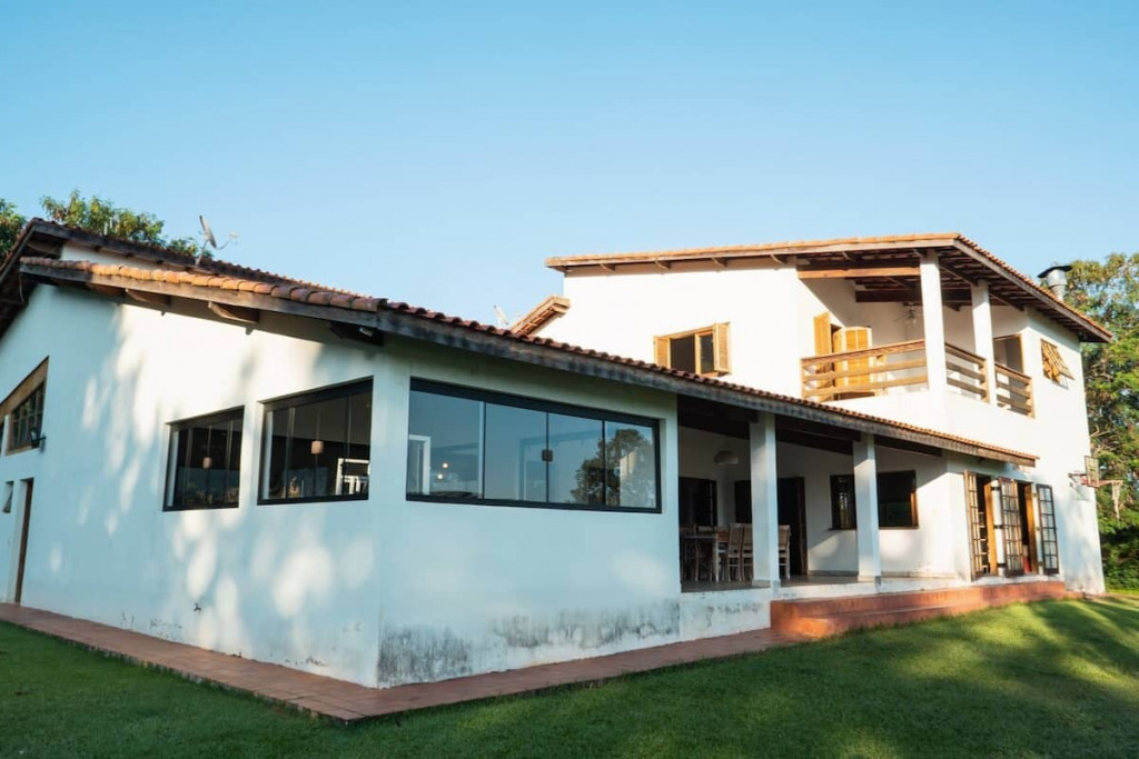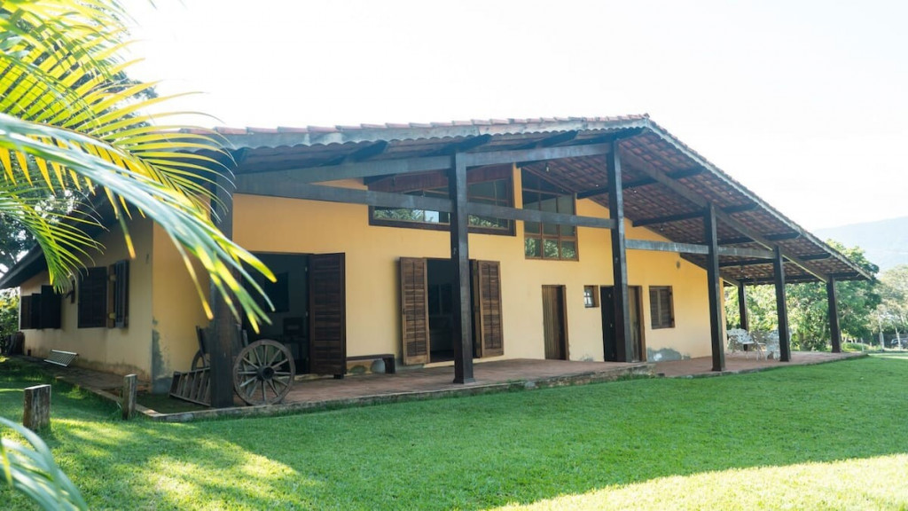 Continuando na estrada, a 80 metros de distância temos a outra casa com espaços muito amplos estilo rústico com conforto, delimitada a uma área de 7 mil metros quadrados, incluídos nessa área a piscina e o campo de futebol (exclusivo aos locatários desta casa).