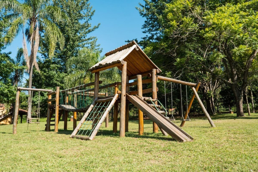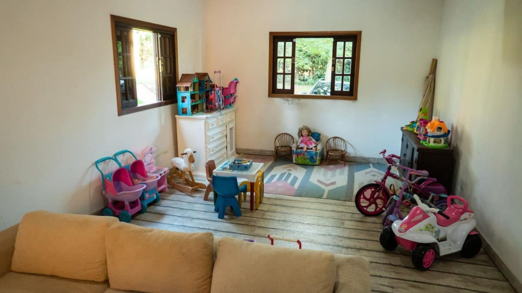 Essa casa esta delimitada com cercado natural (tocos de madeira e pês de lavanda) em uma área de 4 mil metros, incluído nessa área o parquinho (exclusivo aos locatários desta casa).
