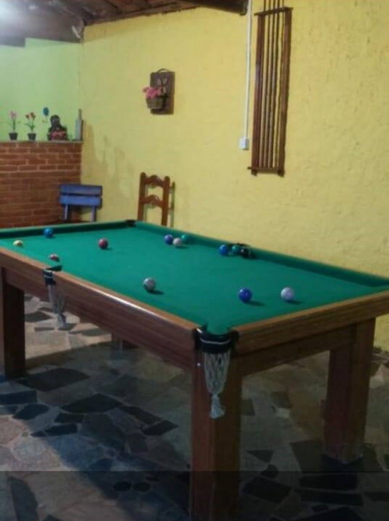 ÁREA EXTERNA GRANDE COM JARDIM , PISCINA COM LOUGE , ÁREA GOURMET COM CHURRASQUEIRA , MESA DE BILHAR.