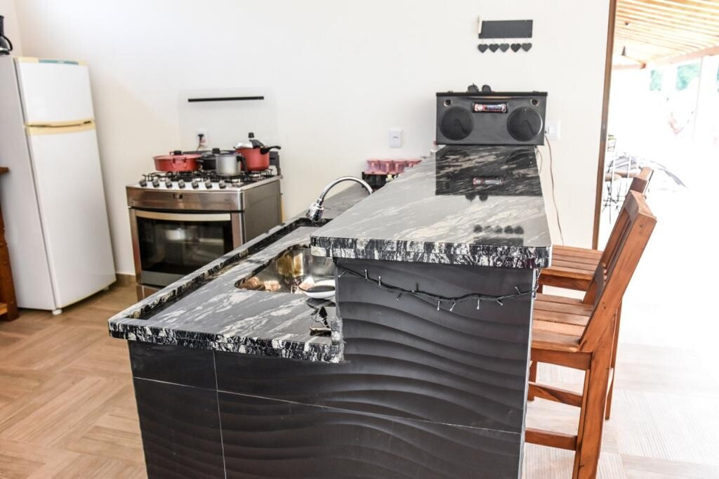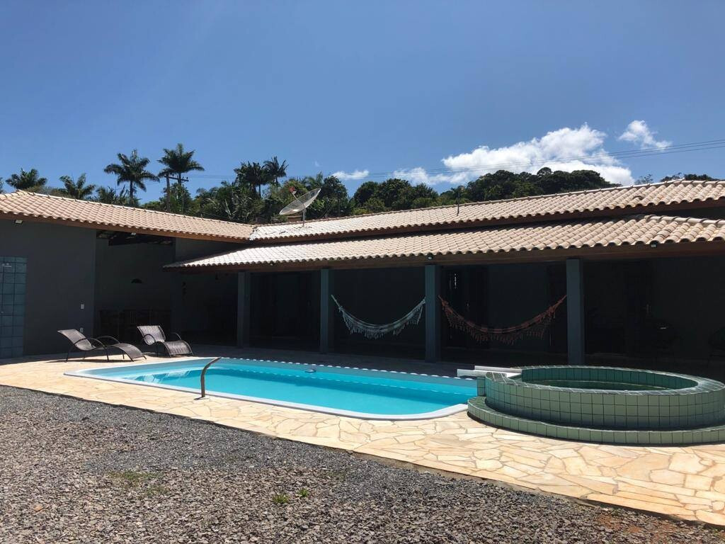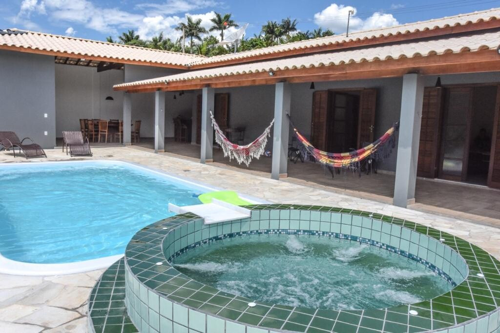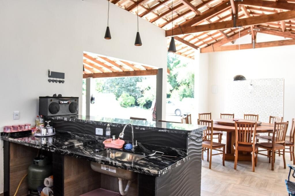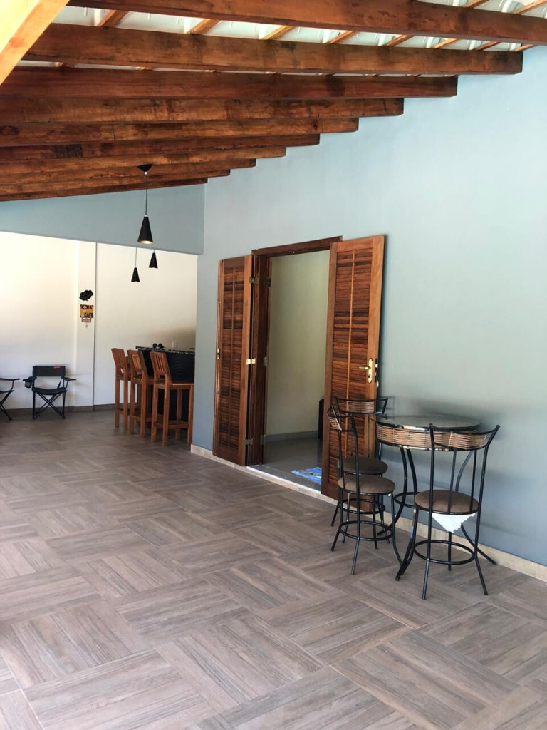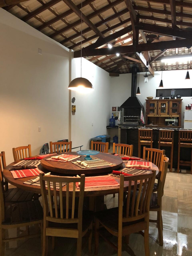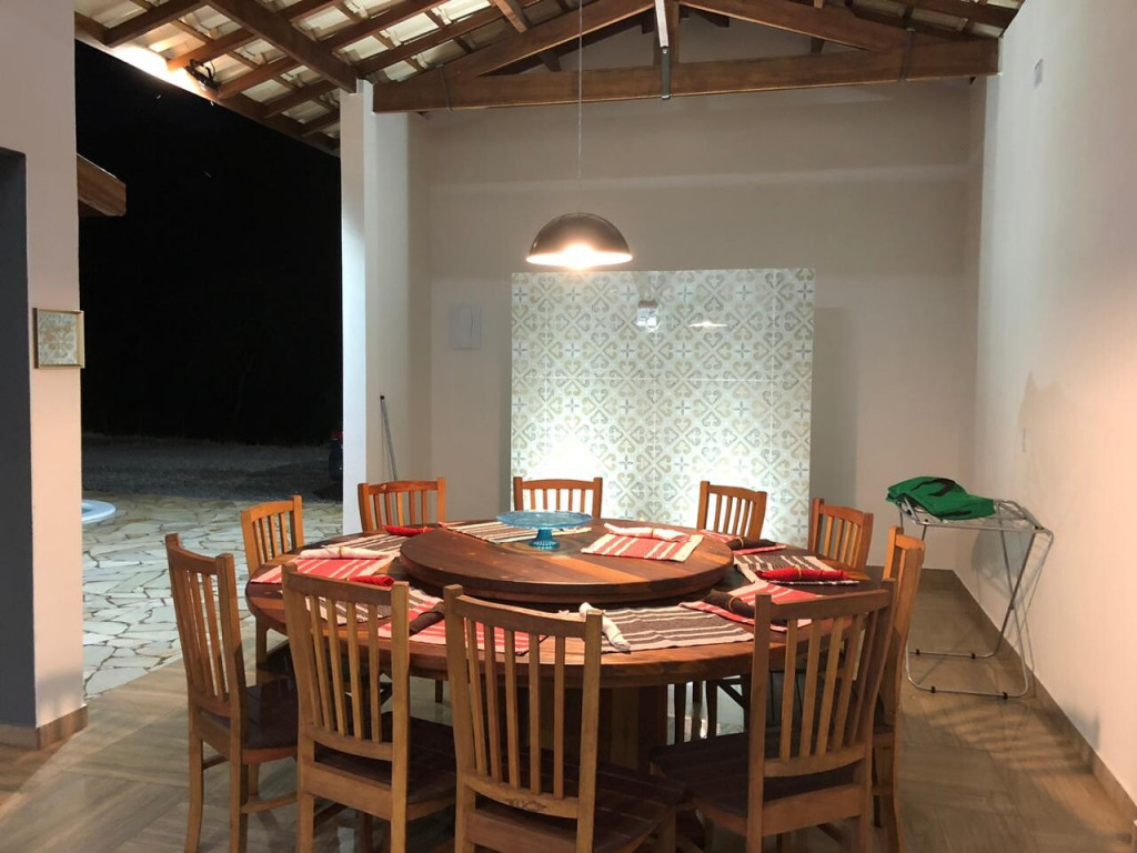 2 redes na varanda; Mesas e cadeiras; Cozinha completa; Área gourmet; Piscina (8m x 4m); Jacuzzi com 8 jatos de massagem; WI-FI; 3 TVs; 7,7km da cidade; Bairro Lavras de Cima; Acesso asfaltado.
