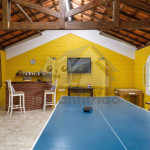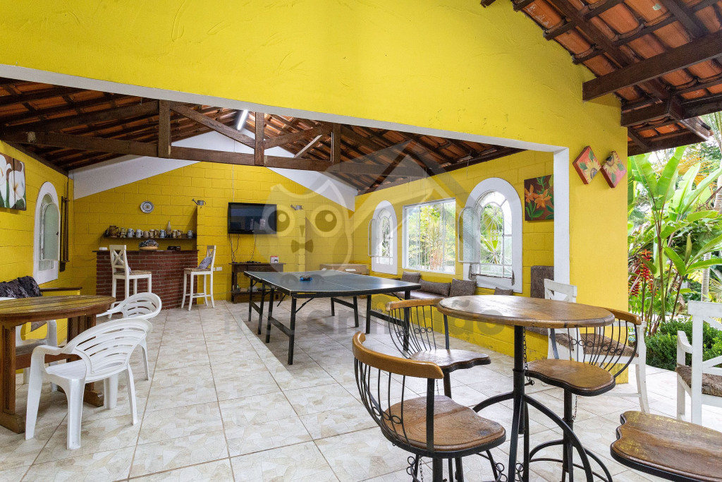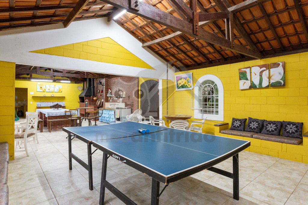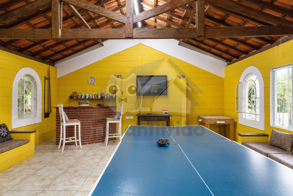 Ao chegar na propriedade, nossos hóspedes encontrarão um amplo espaço externo de lazer em meio à muito verde. Agrega campo de futebol, parquinho, futmesa, piscina infantil e adulta, ducha e espreguiçadeiras. Neste ambiente, contamos com 2 banheiros.Ainda oferecemos espaço gourmet próximo da piscina que conta com forno de pizza, fogão a lenha, churrasqueira, chapa para lanches e cozinha de apoio.No salão de jogos, existem outras opções de lazer como tênis de mesa, mesa de baralho, mesa de dominó e jogos de tabuleiro.Antes de entrar na casa, o hóspede terá acesso à uma varanda arejada com cadeiras para descanso. Já no interior do imóvel, temos uma sala de TV e uma outra sala com sofás e lareira. Além disso, dispomos de uma cozinha completa com os utensílios necessários para a estadia.Contamos com 6 quartos, que acomodam no total 21 pessoas, sendo: 5 quartos triplos com cama de casal e solteiro e 1 quarto com 4 camas de solteiro. Os quartos dividem 3 banheiros no interior da casa.Também oferecemos WI-FI para quem precisar fazer home office.