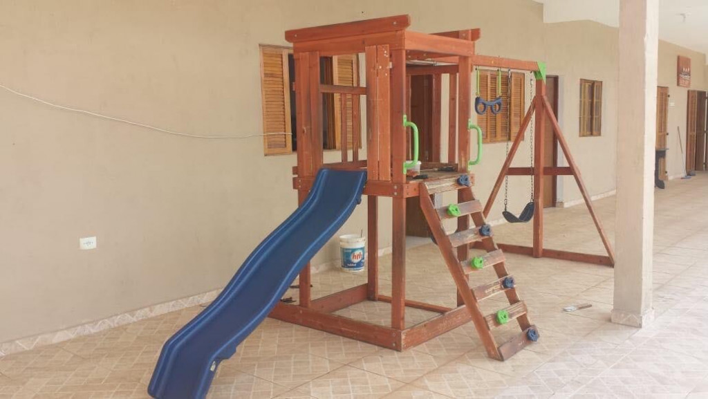SALA AMPLA COM SOFÁ, TV, MESA E CADEIRAS. ÁREA EXTERNA AVARANDADA COM CHURRASQUEIRA, PISCINA, PLAYGROUND, QUADRA DE ESPORTES, DUCHA, PISCINA DE AREIA E PISCINA DE BOLINHAS.