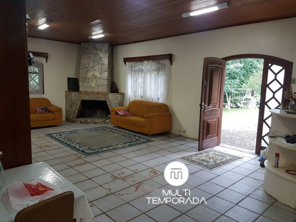 Sala de Estar: Sofá-Cama de Casal, 2 Colchões Adicionais de Solteiro e TV 42'';A propriedade possui em sua totalidade 19.000m². Nesse espaço imenso, temos estacionamento para mais de 10 carros (sendo 1 vaga coberta), campo de futebol, parquinho infantil com balanço, local para caminhada em meio a natureza, churrasqueira externa com bancos no jardim abaixo das árvores e claro, muito contato com a natureza.