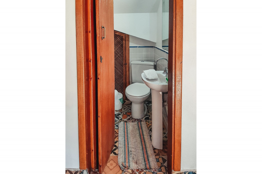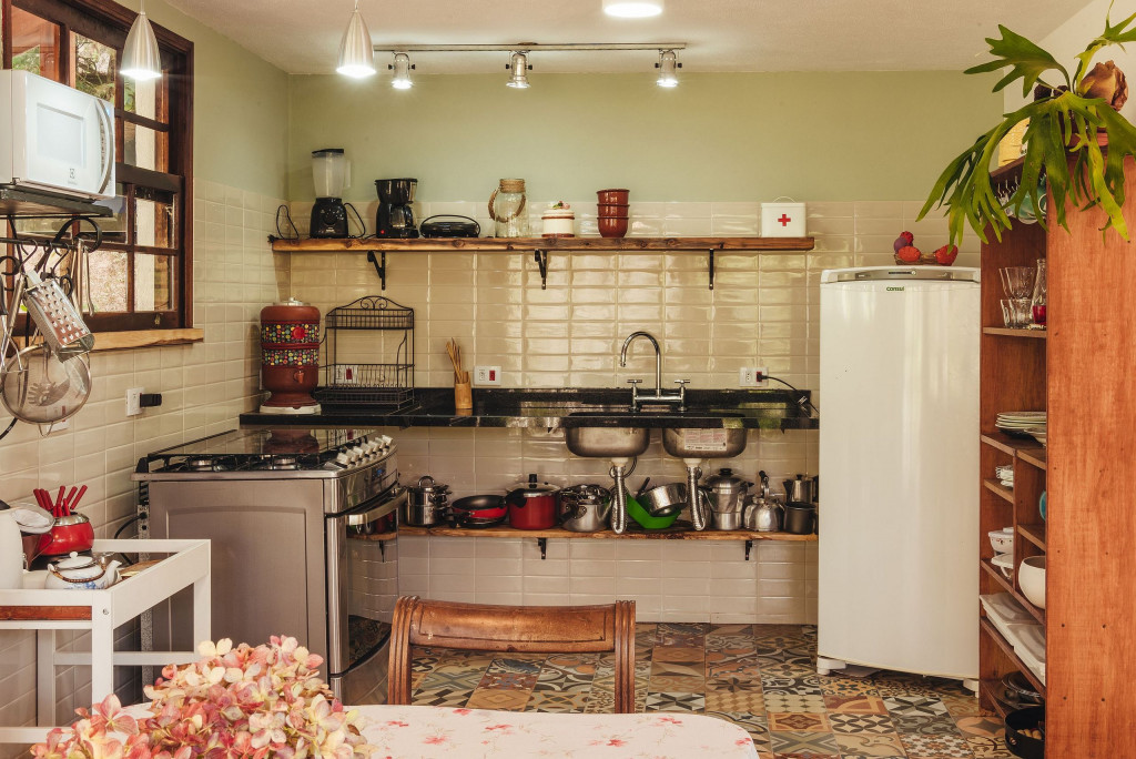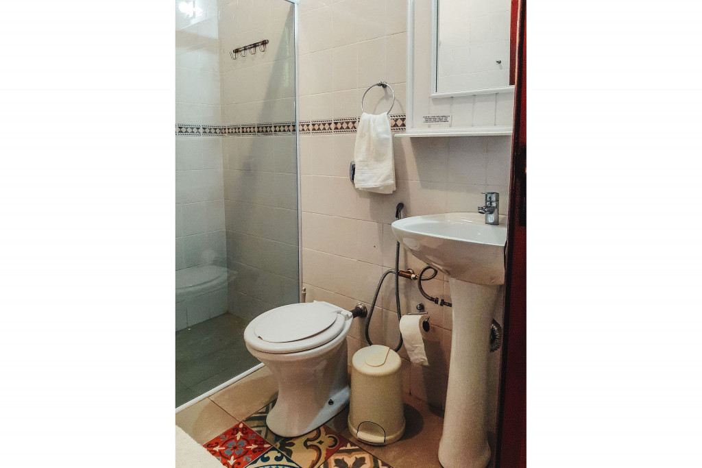 O local possui um banheiro completo com chuveiro elétrico e um lavabo próximo à sala. Possui cozinha com todos os utensílios necessários para a estadia como: microondas, panelas, fogão, geladeira, panela de fondue, copos, taças, talheres, pratos, etc.