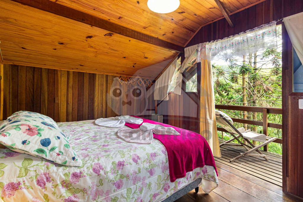 Situado no alto de uma montanha e envolto por muita natureza, nosso chalé possui vista para a mata e acomoda até 4 pessoas.