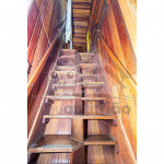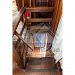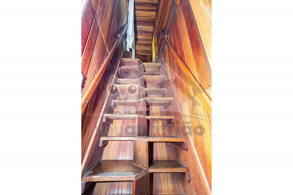 Já no segundo andar, subindo as escadas internas (estilo Santos Dumont), temos 1 suíte com cama de casal queen-size, banheiro com dois chuveiros, mini secador de cabelo e um balcão com vista para a montanha. Todas as camas são aquecidas com lençol térmico.