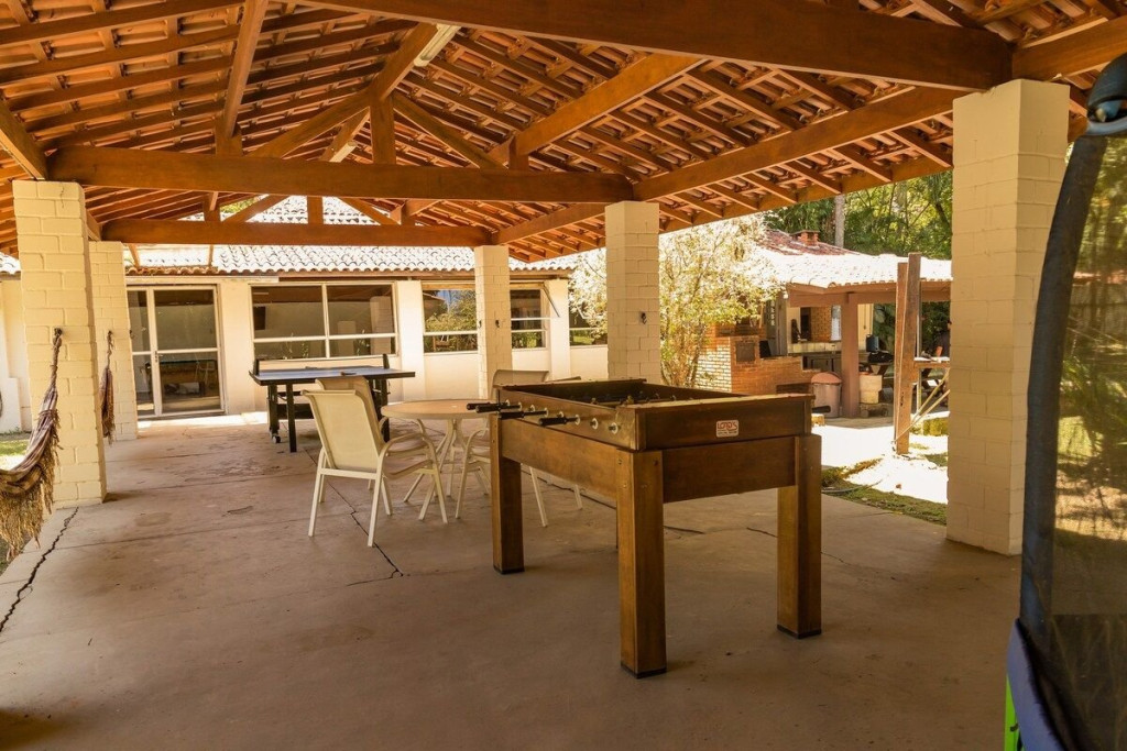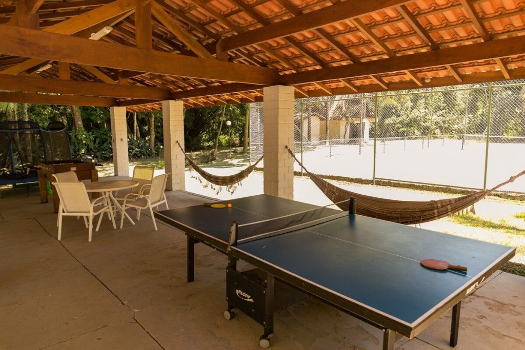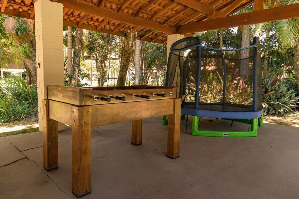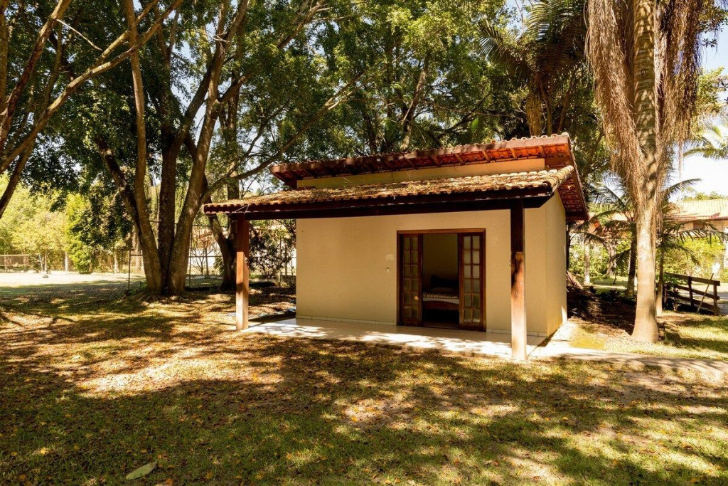 ÁREA COMUM COMPARTILHADA COM OUTROS CHALÉS: Internet rápida Filtro de água Geladeira e Microondas Cafeteira Quadra de Tenis e Beach Tennis Piscina Churrasqueira Viveiro Salão de Jogos CHALÉ PRIVADO: Banheiro privativo Cama Queen Roupa de Cama e Banho Secador de cabelo Vista para o jardim Comece o seu dia jogando tênis ou beach tennis em nossas quadras. Aqui, você poderá se divertir ao ar livre, se exercitar e aproveitar ao máximo a sua estadia. Depois, mergulhe na piscina para refrescar-se e aproveite nossa churrasqueira coberta para um delicioso almoço. Com um espaço grande para cozinhar e jantar, nossa churrasqueira é o lugar perfeito para reunir a família e amigos e desfrutar de um dia ensolarado. E se você quiser desfrutar da natureza, visite nosso viveiro para ver as araras e o pavão. Este é um lugar encantador e tranquilo para relaxar e apreciar a beleza da natureza. E para ainda mais contato com a natureza, aproveite o lago cheio de peixes para observação. É um lugar perfeito para sentar, relaxar e apreciar a paisagem. À noite, reúna a família e amigos no nosso salão de jogos para uma noite animada. Com jogos como sinuca, cartas e jogos de tabuleiro, há algo para todos. É um lugar perfeito para se divertir e se conectar com os seus entes queridos. E para aproveitar ao máximo sua estadia em Guararema, não deixe de visitar algumas das principais atrações da região, como: Parque Estadual da Serra do Mar - a menos de 10 km do chalé Cachoeira dos Cristais - a cerca de 15 km do chalé Mercado Municipal de Guararema - a cerca de 7 km do chalé.Este chalé é o local perfeito para descansar, se divertir e se reconectar com a natureza. Reserve agora e comece a planejar sua próxima aventura em Guararema! Nós garantimos que você terá uma estadia incrível e inesquecível."