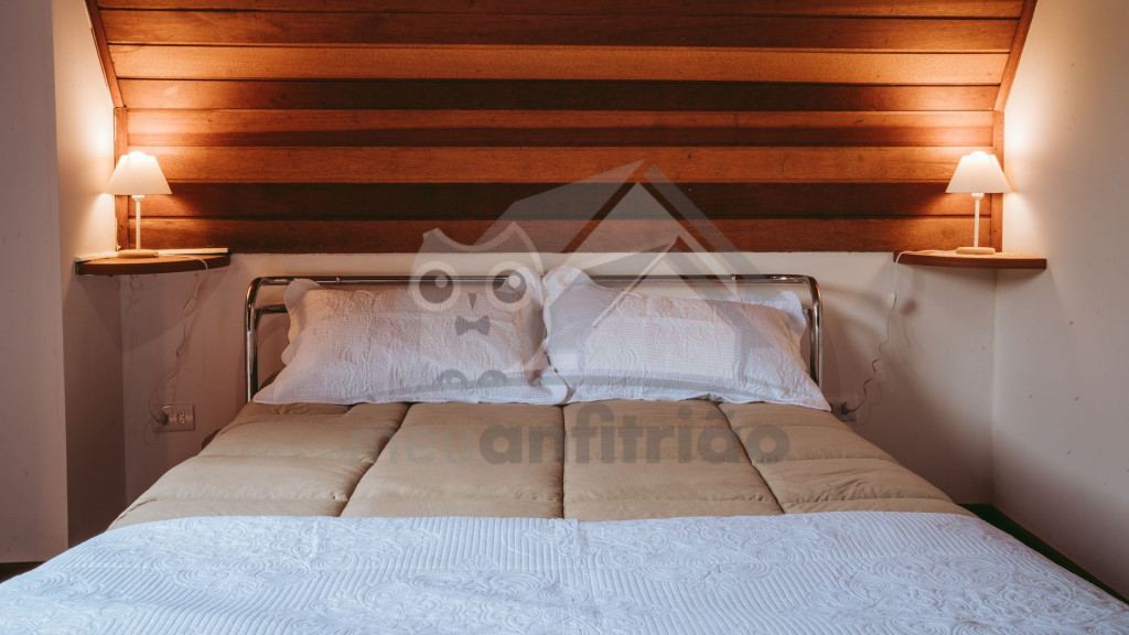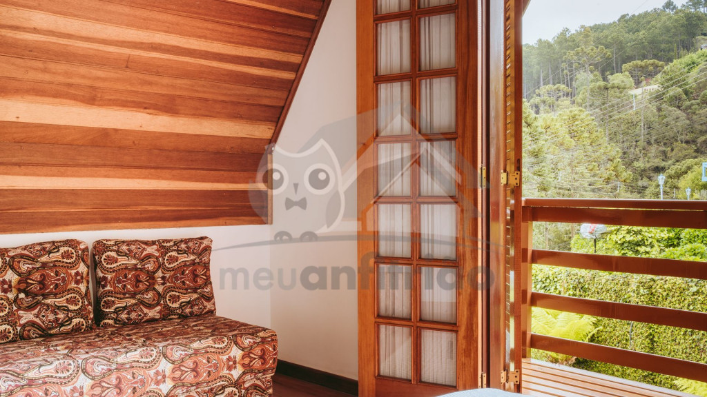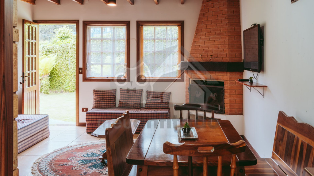 O Chalé 1 tem uma área total de 90 m² e é todo feito de madeira, trazendo um ar de muito aconchego ao local.Na entrada do chalé, no piso inferior, possuímos uma sala de estar muito aconchegante com sofás, lareira e TV Smart 42''. O ambiente é integrado com a cozinha que possui todos os utensílios e eletrodomésticos necessários para a estadia. Neste ambiente também é onde fica o banheiro do chalé.No piso superior, temos 2 quartos: sendo um deles com sacada e um lavabo que fica entre ambos. É necessário subir uma escada em caracol para acessá-los. Um dos quartos possui cama de casal e cama de solteiro e o outro cama de casal de solteiro e um sofá-cama. Também disponibilizamos WI-FI para quem quiser fazer home office em meio à natureza.