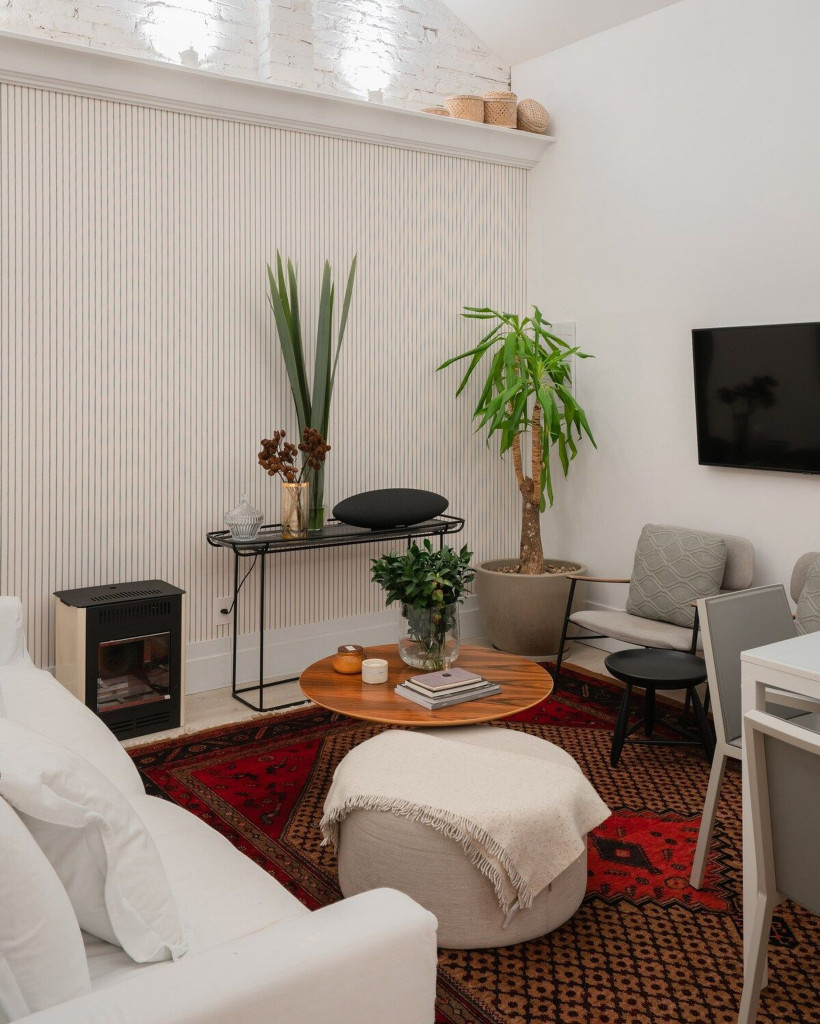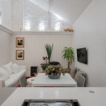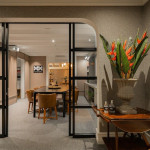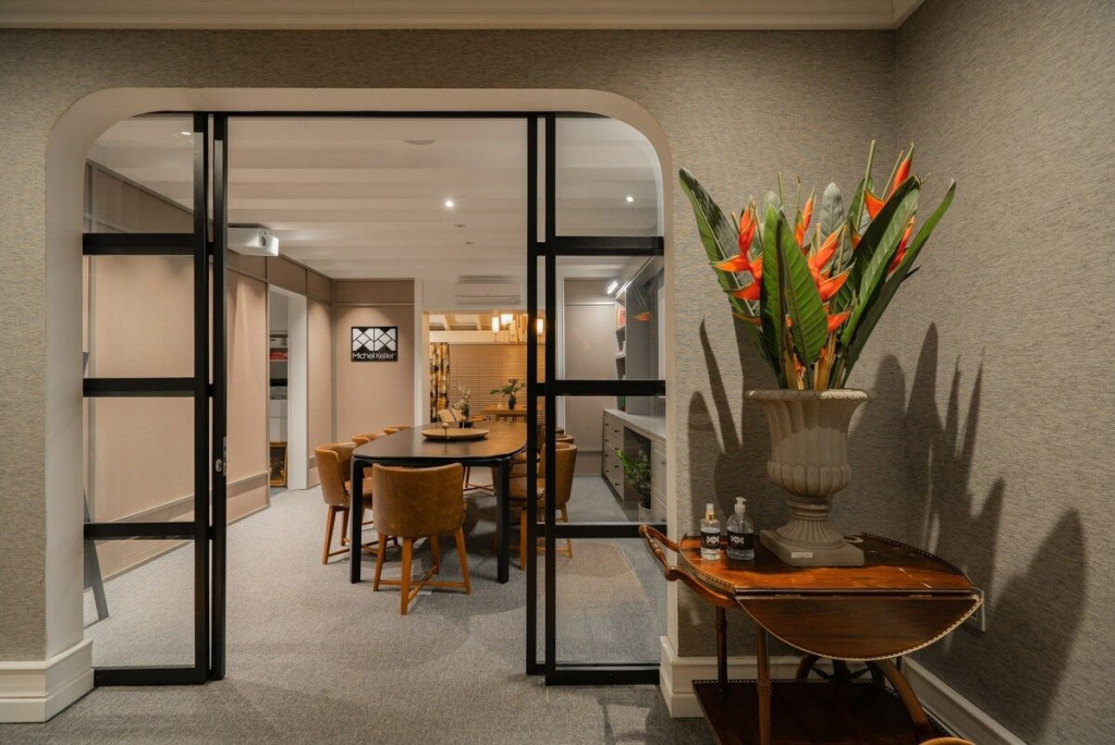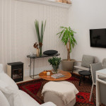 Desde o hall a toda parte superior casa será de uso exclusivo dos hóspedes. O edifício se divide em 3 partes. O acesso se dá da rua até um hall comum, onde logo em frente nas portas pretas de vidro se encontra o escritório de design do anfitrião. Ao lado, a porta dá acesso ao apto de forma privativa.