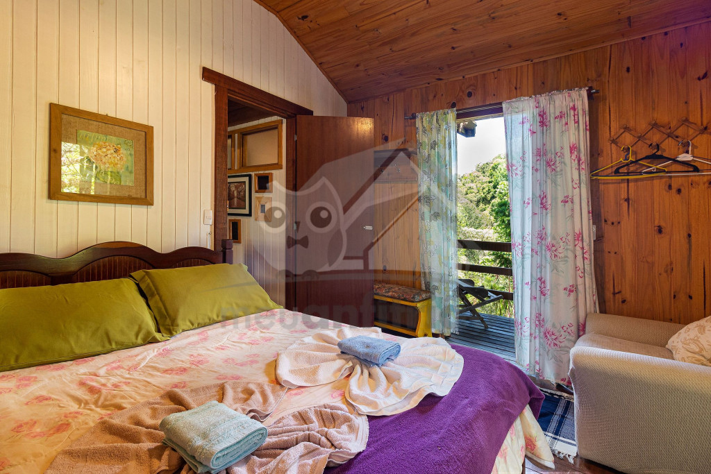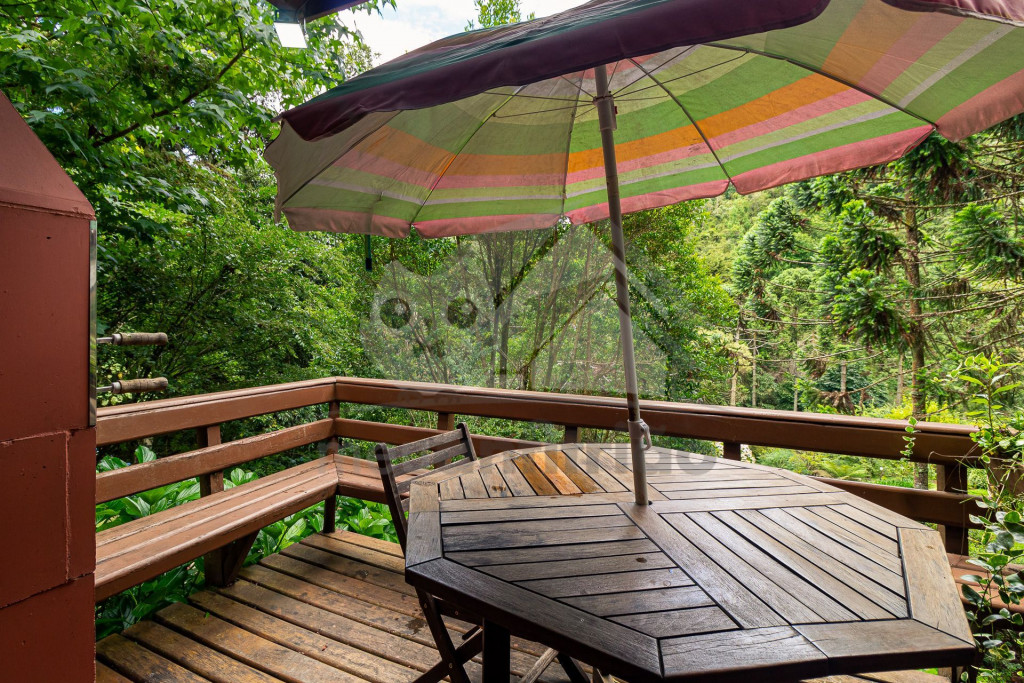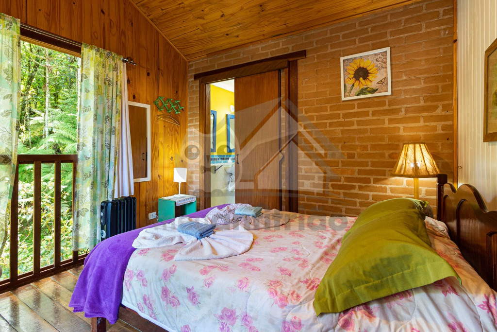 Situado no alto de uma montanha e rodeado por muita natureza, nosso chalé possui vista privilegiada para a mata e acomoda um grupo de até 11 pessoas.