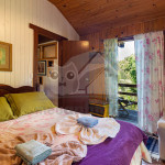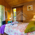 Nosso chalé é espaçoso e acomoda 11 pessoas. Ao todo, são 4 suítes, estando 3 na parte interna e 1 na parte externa. Todos elas possuem aquecedores e lençóis térmicos, mini secador de cabelo e duas delas uma varanda com vista.